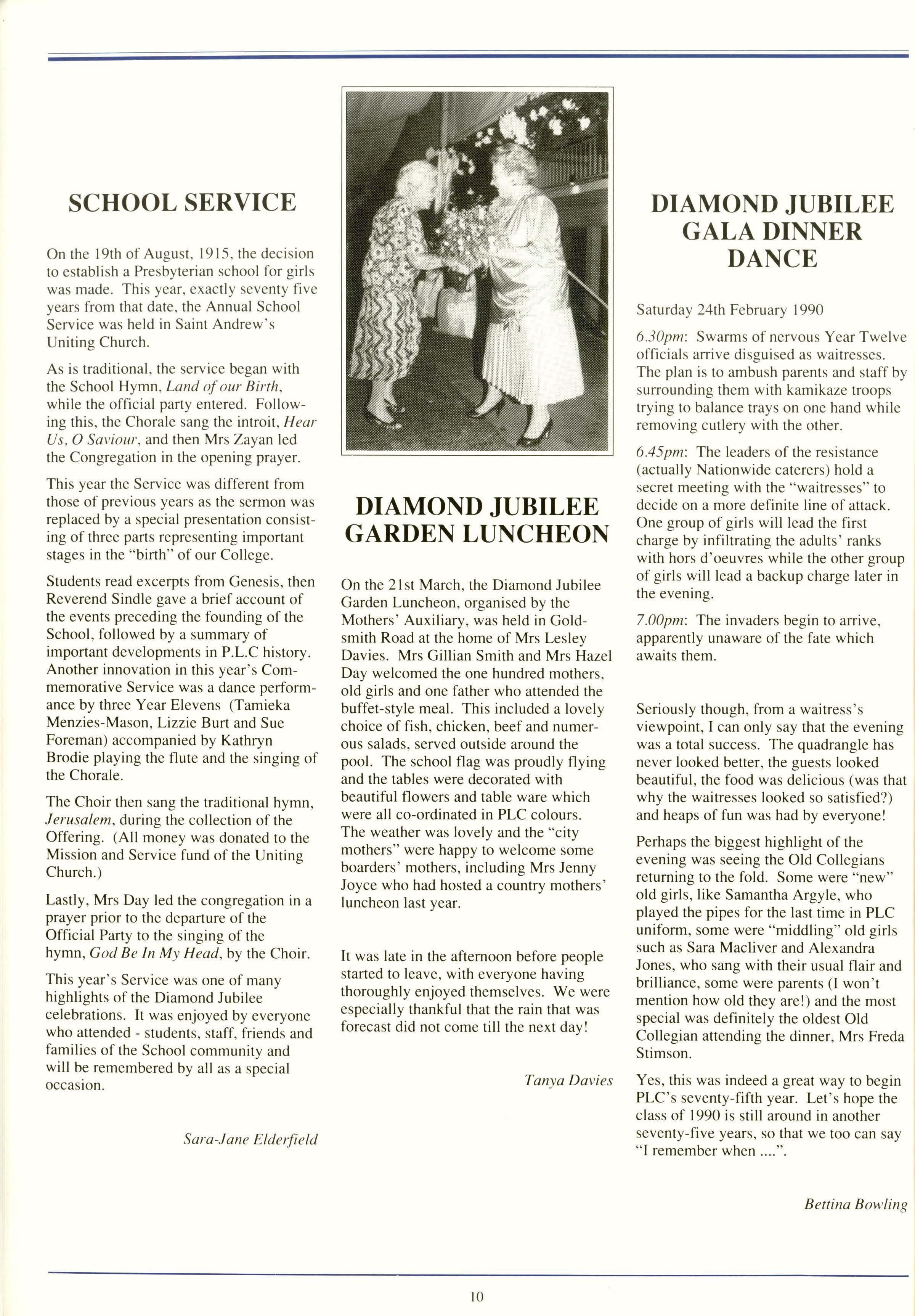 Principal: Mrs H.J. Day. B.A Dip.Ed L.Mus L.Te.L., A.A.S.A MAe.E., F.I.E.A A.A.I.M. Director of Pastoral Care and Discipline, Senior Resident-in-charge Boarding House and Deputy Principal: Mrs G. Bull, Dip.Home Sc., Teach.Cert., M.A.e.E.