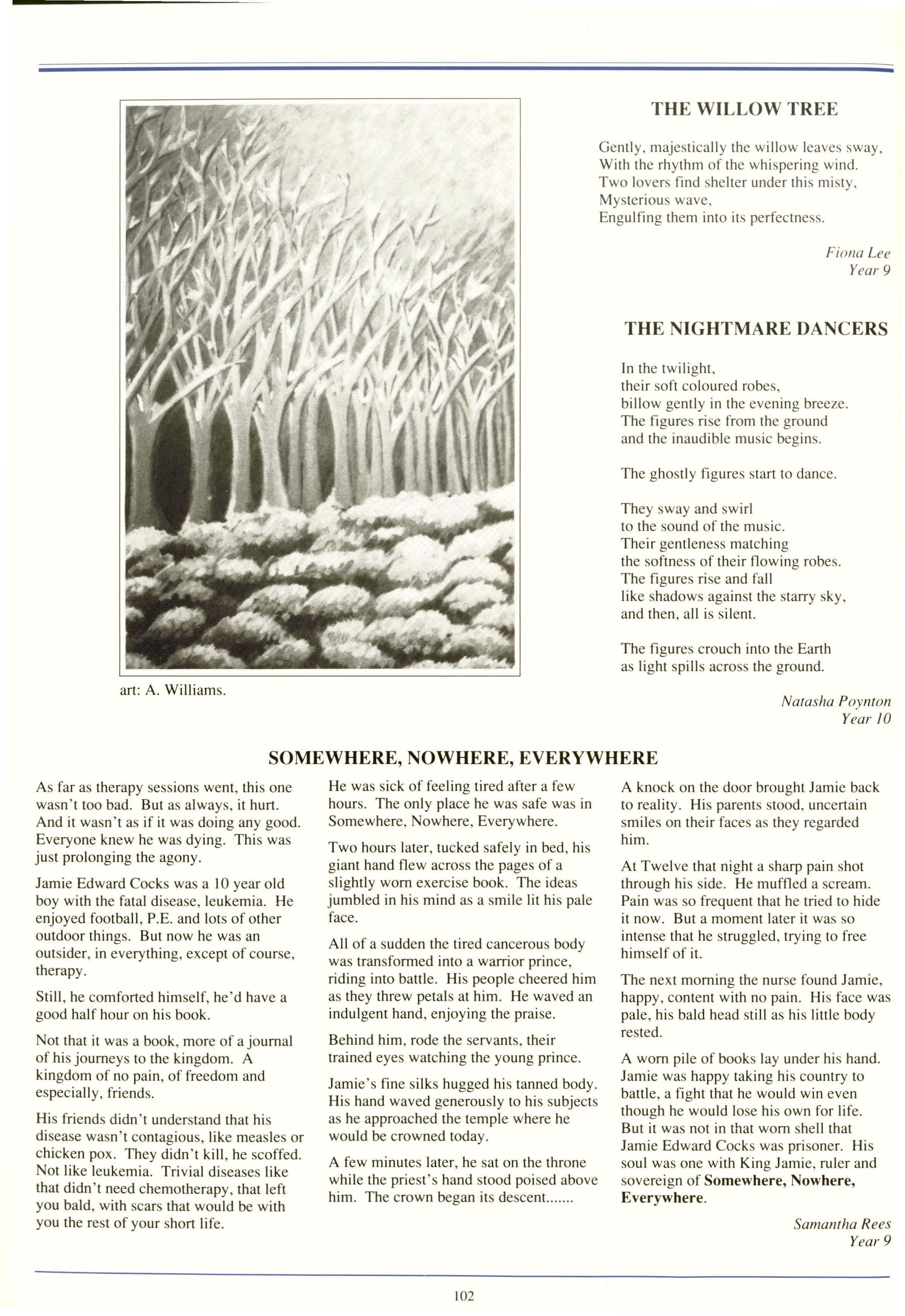 Jamie Edward Cocks was a 10 year old boy with the fatal disease, leukemia. He enjoyed football, P.E. and lots of other outdoor things. But now he was an outsider, in everything, except of course, therapy.