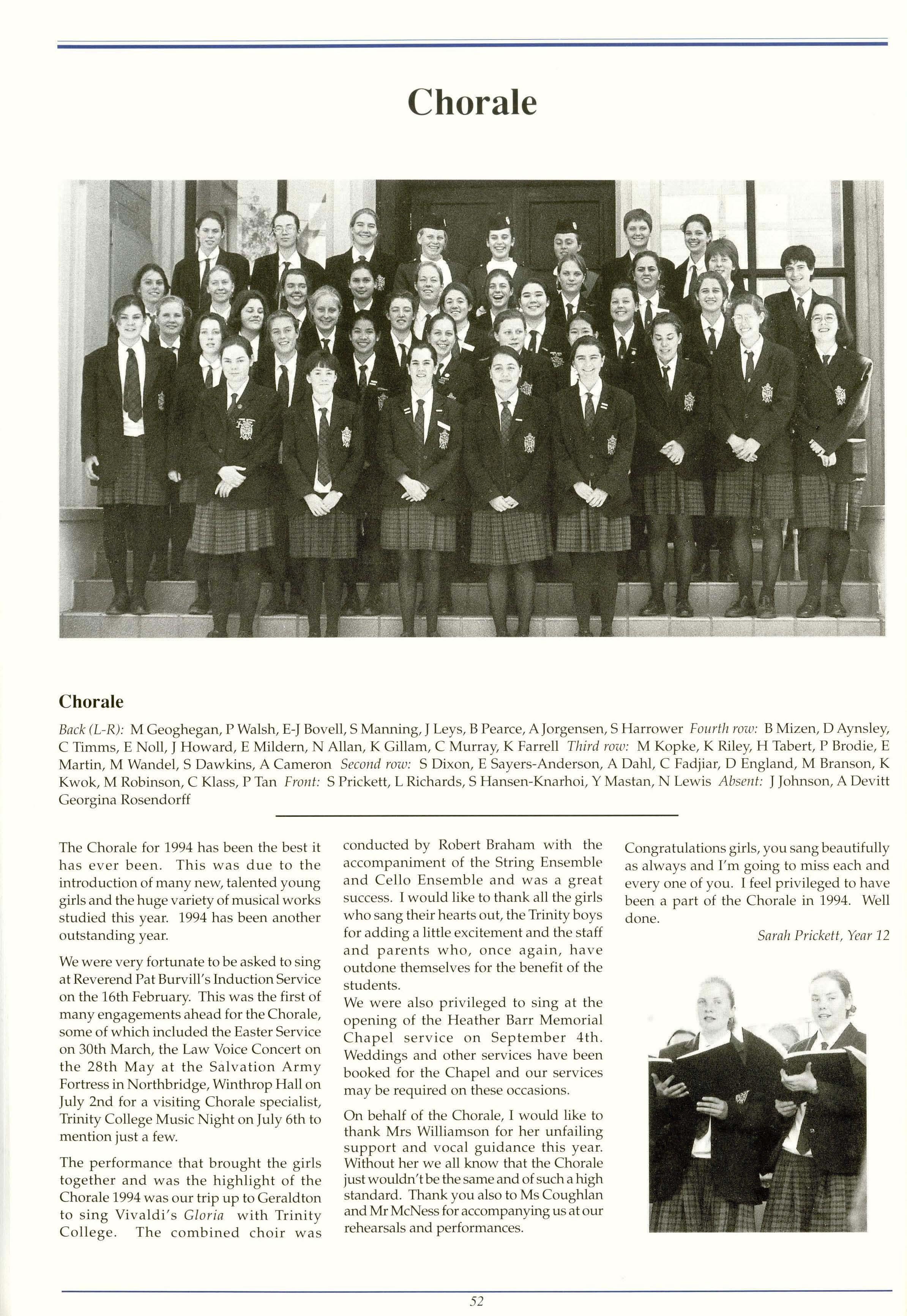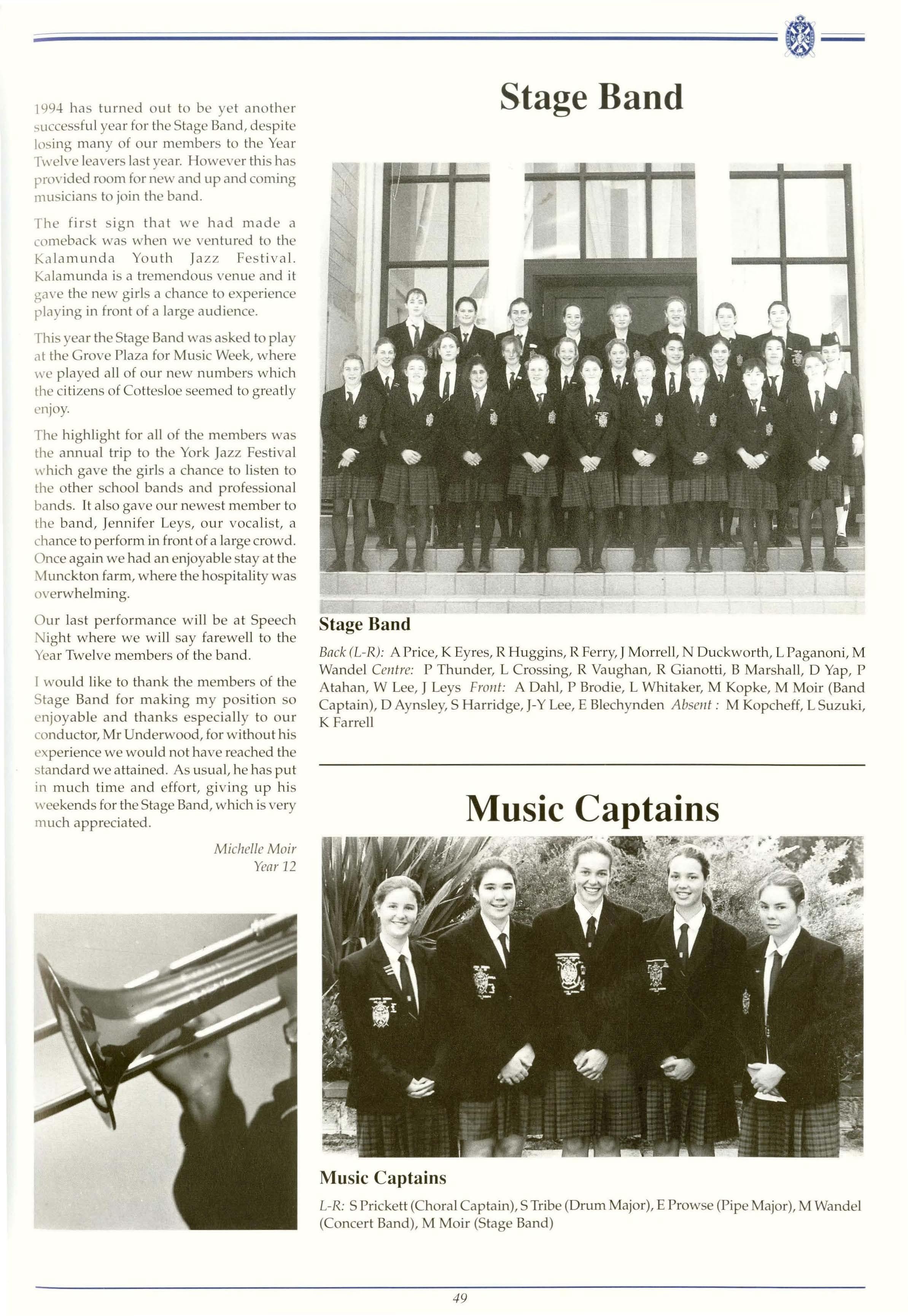1994 has been an interesting and exciting year for the School for it has seen the success of some initiatives spoken of in last year's report and the further development of others. For me personally it has been most satisfying to complete successfully the second year of my present five year plan.