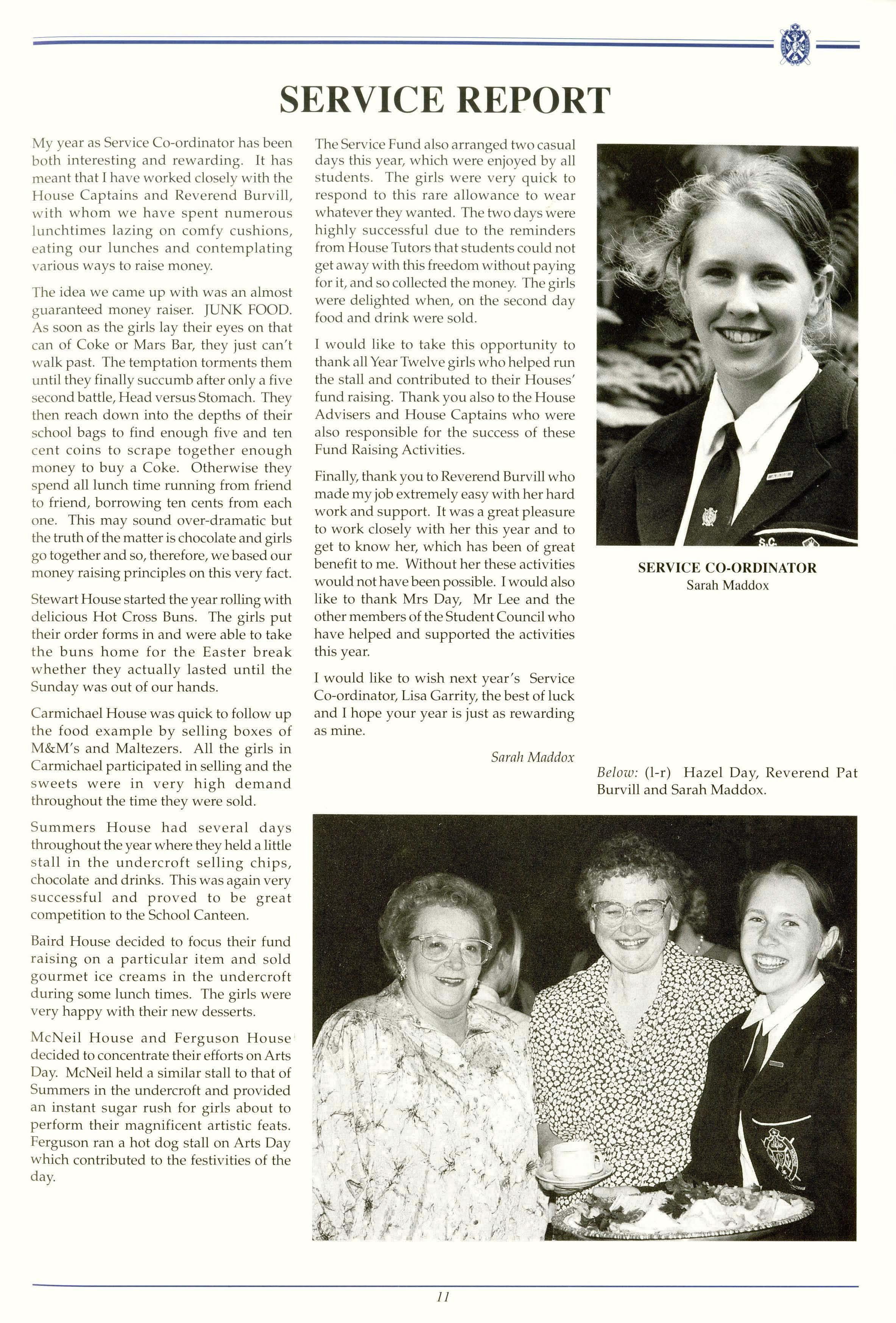 Special mention should be made here of the Boarding House staff for it is a huge task to care for the 181 girls who live in. Under the guidance of Gwen Bull, they provide real support for the boarders.
