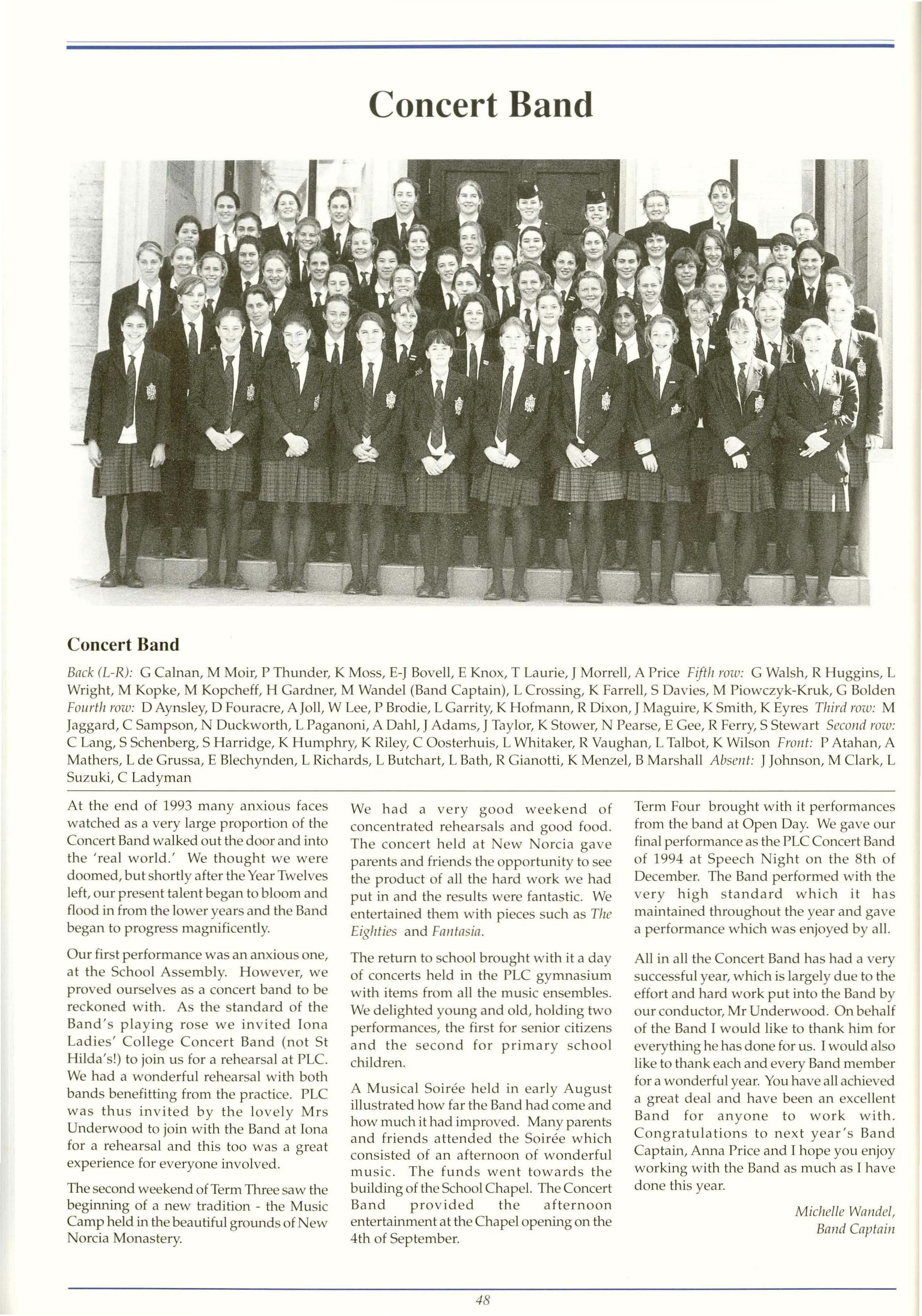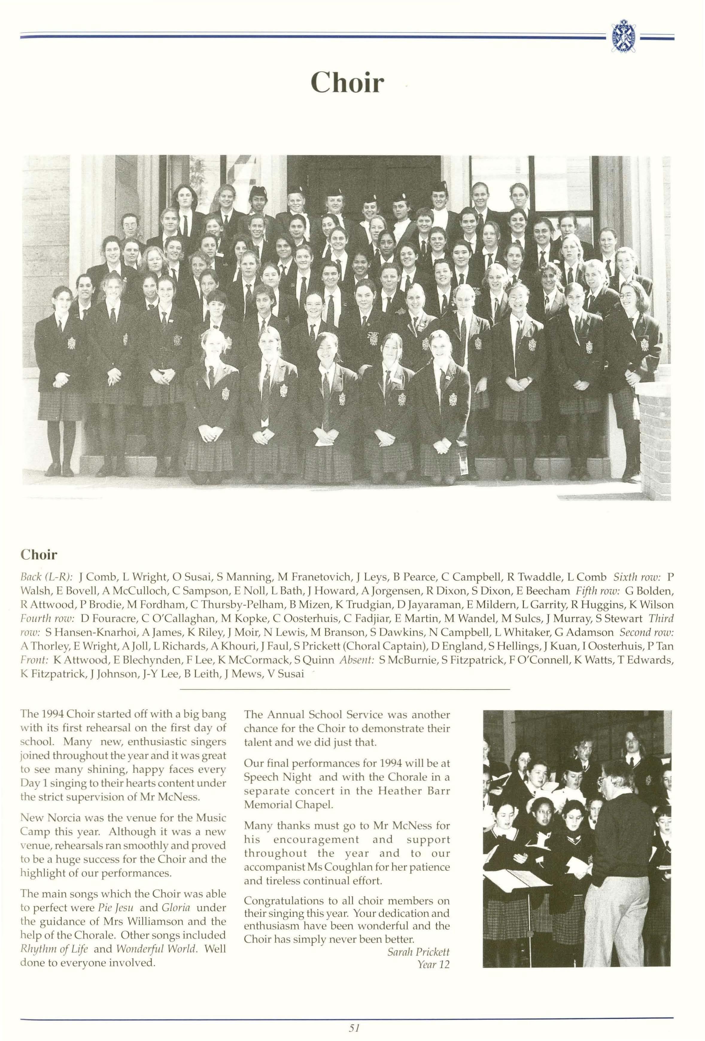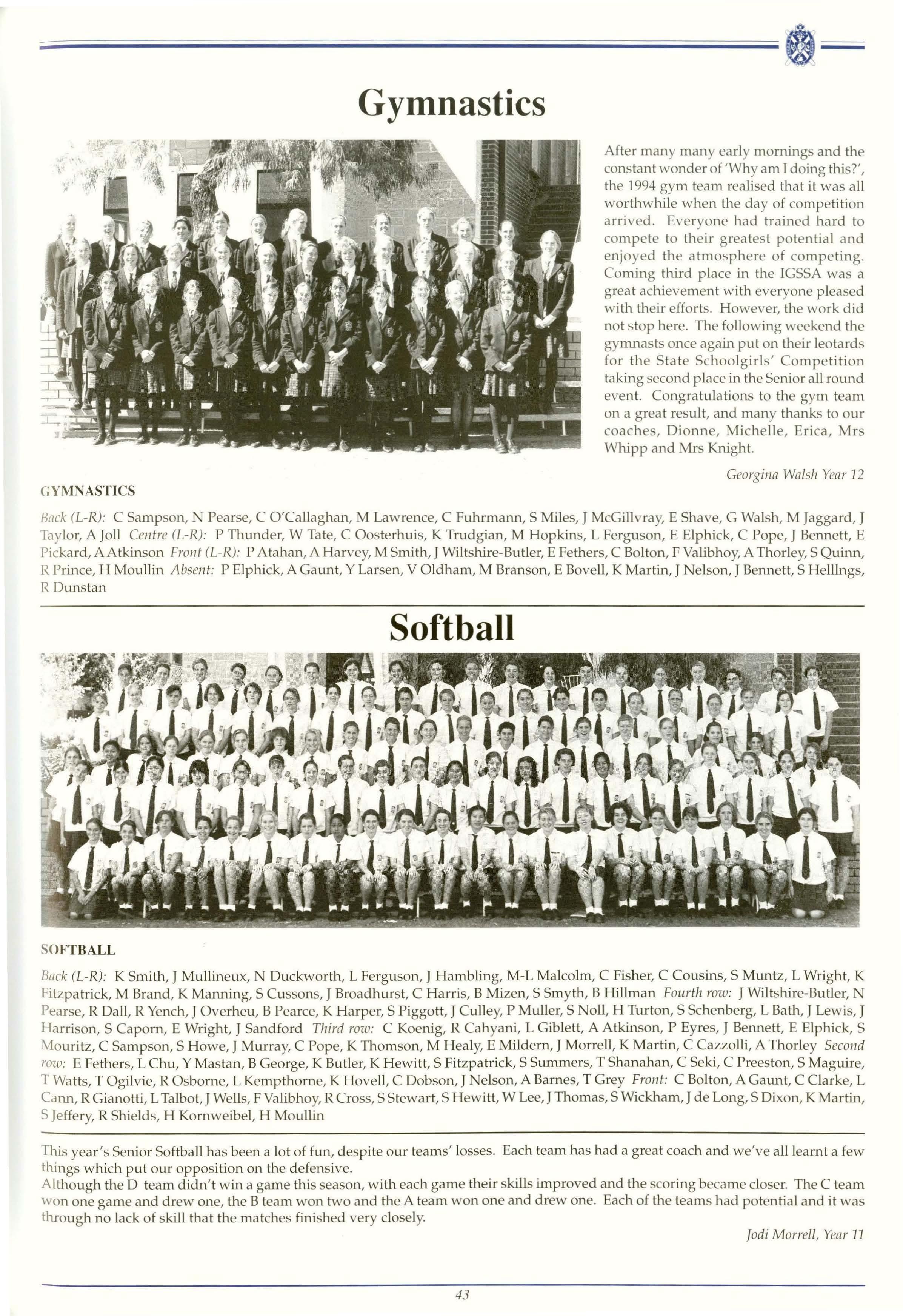 In 1993, 150 girls graduated successfully from Year Twelve with 15 receiving aggregates of more than 400, and 59 more that 350 in the Tertiary Entrance Scores.