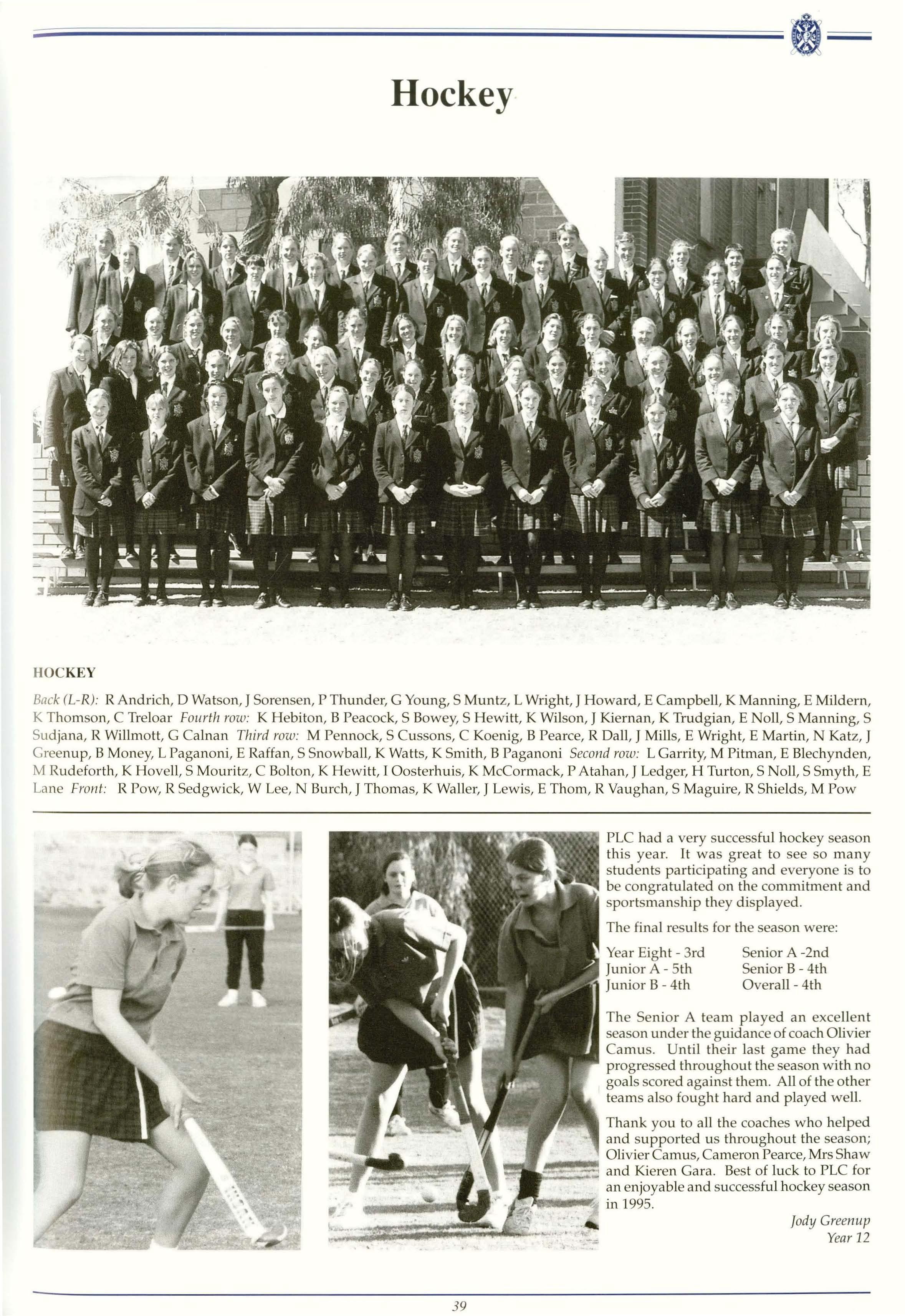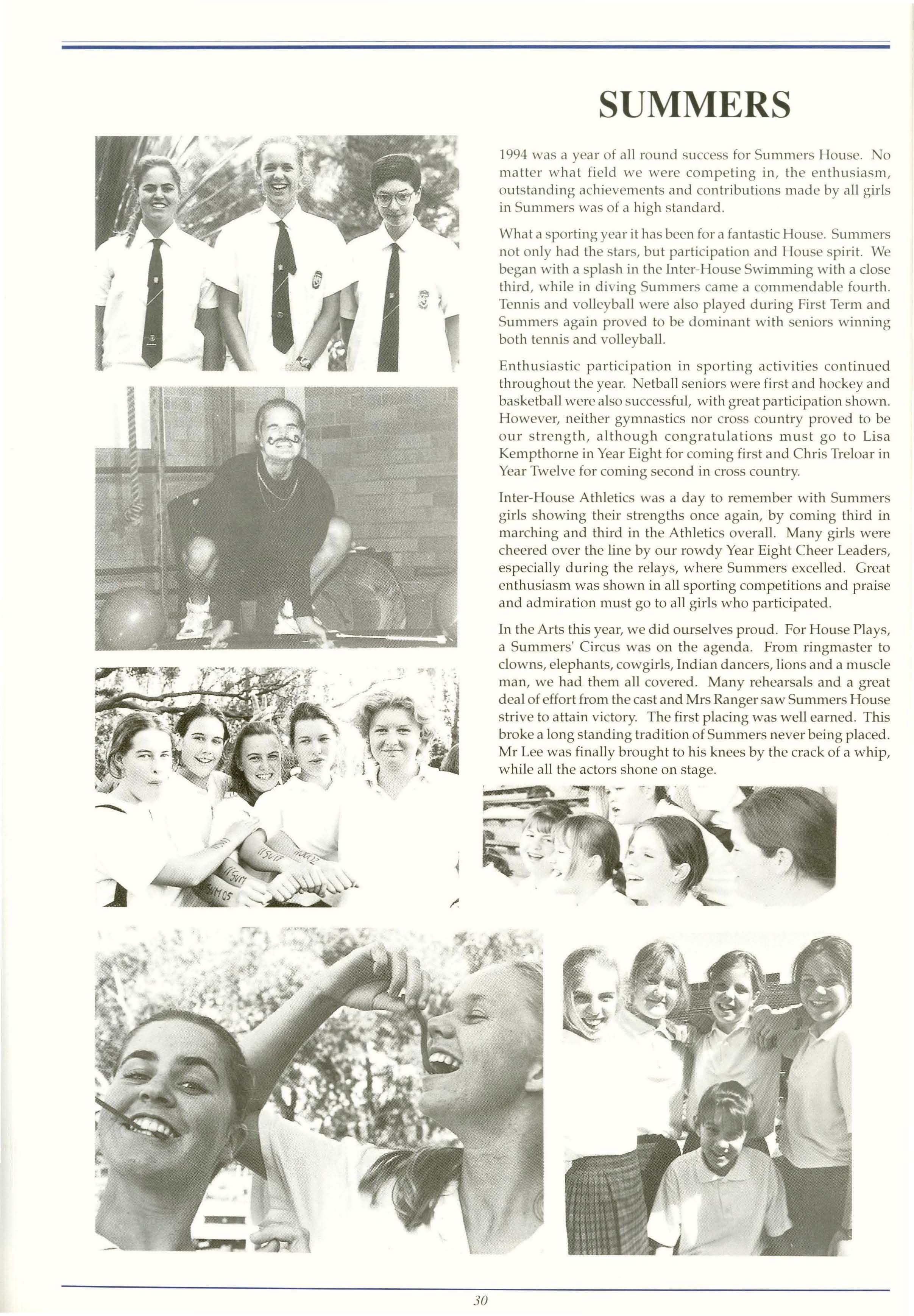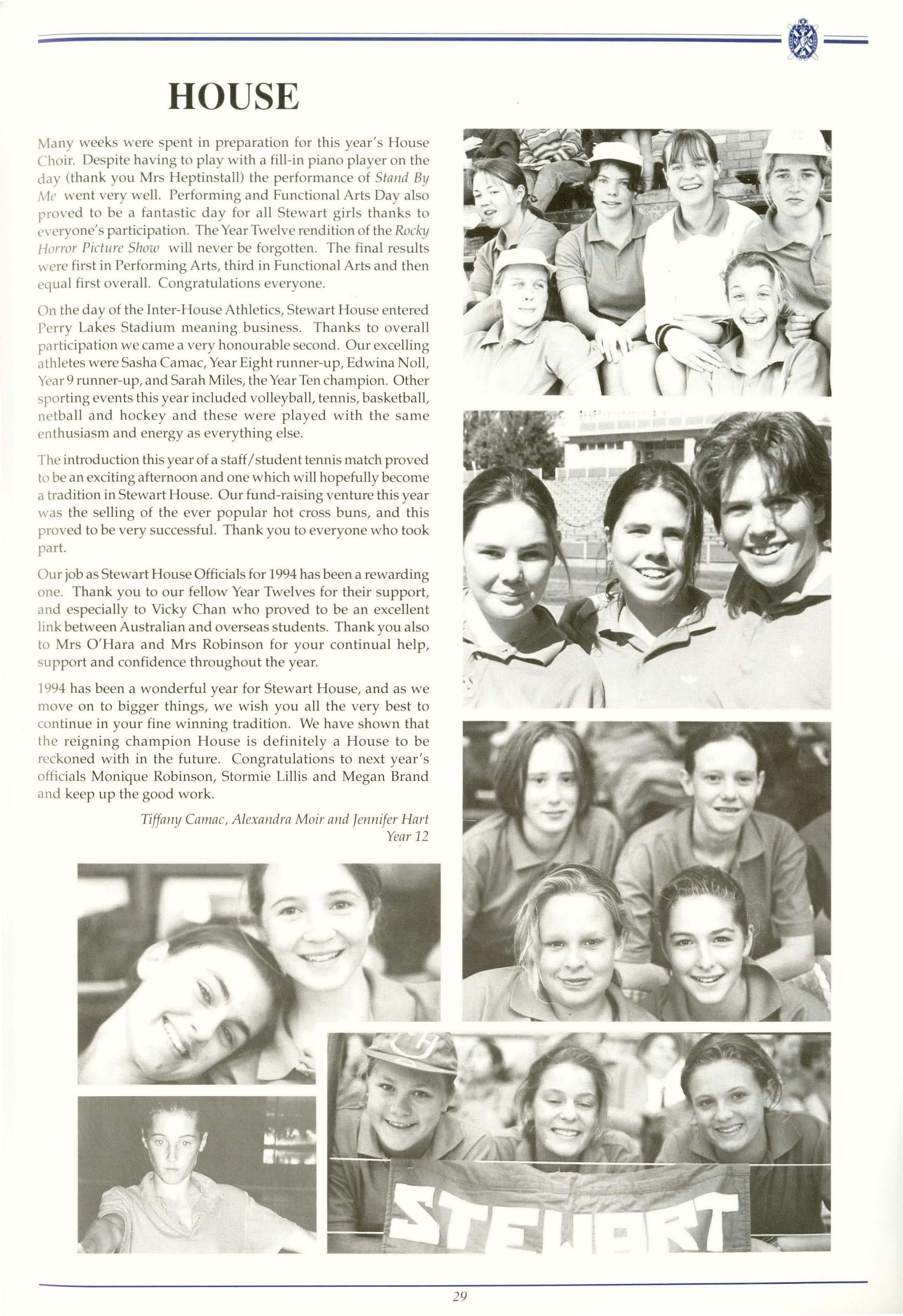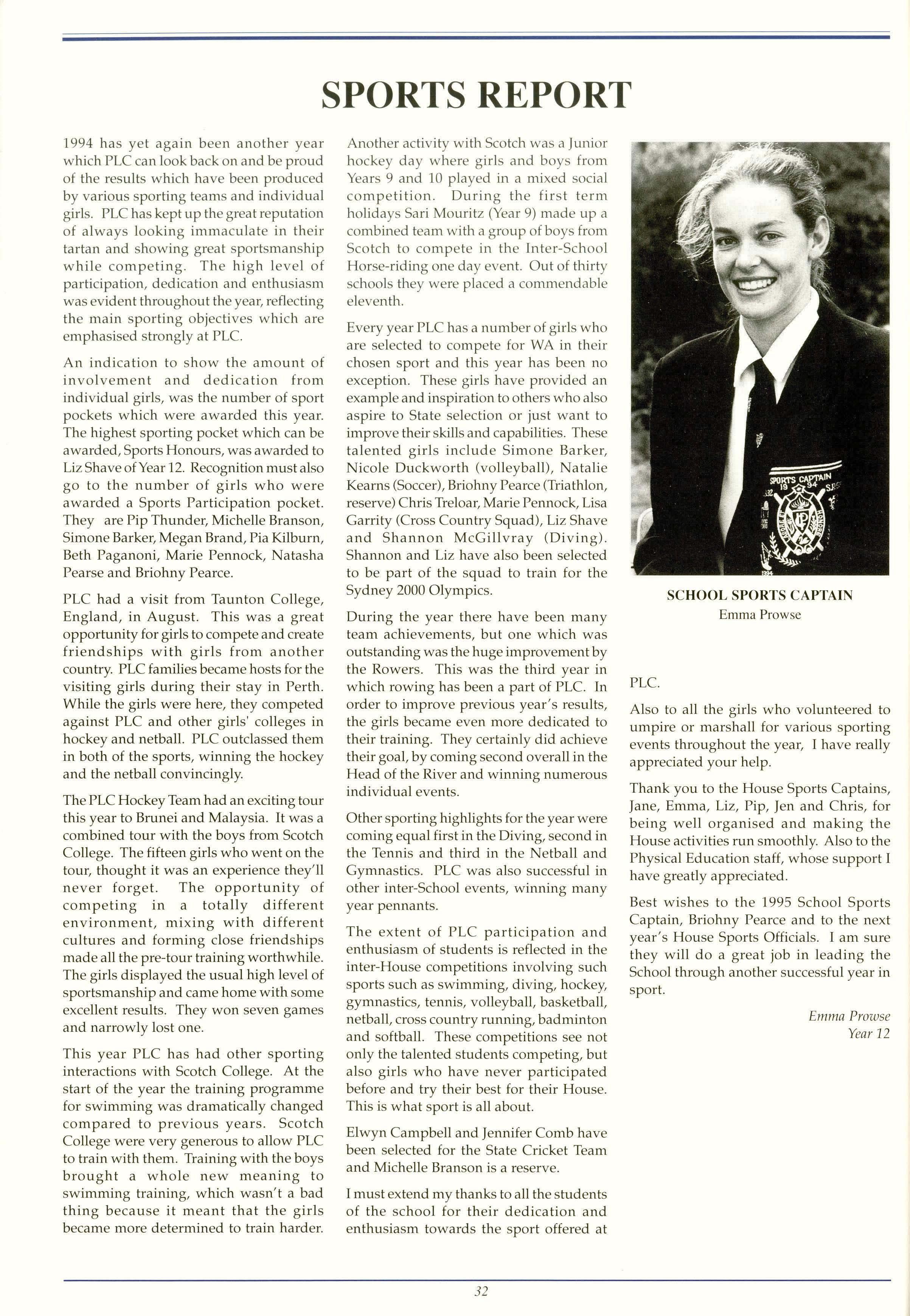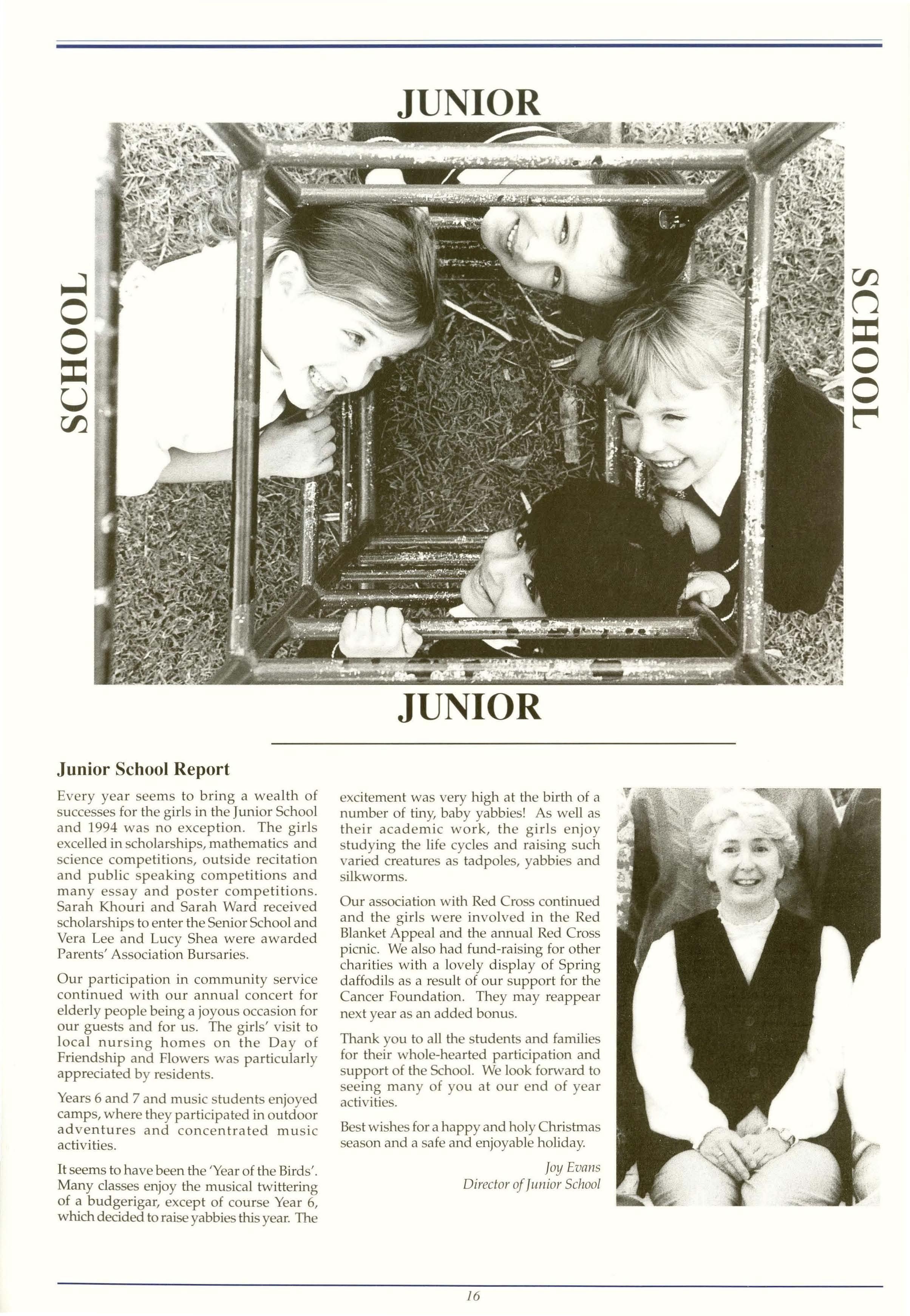 I am pleased to report the extension and enhancement of the physical education and sport programmes in the Junior School in 1994. An Inter-House competition has been introduced. The younger girls have also been given the opportunity to train with the older girls for Inter-School competitions.