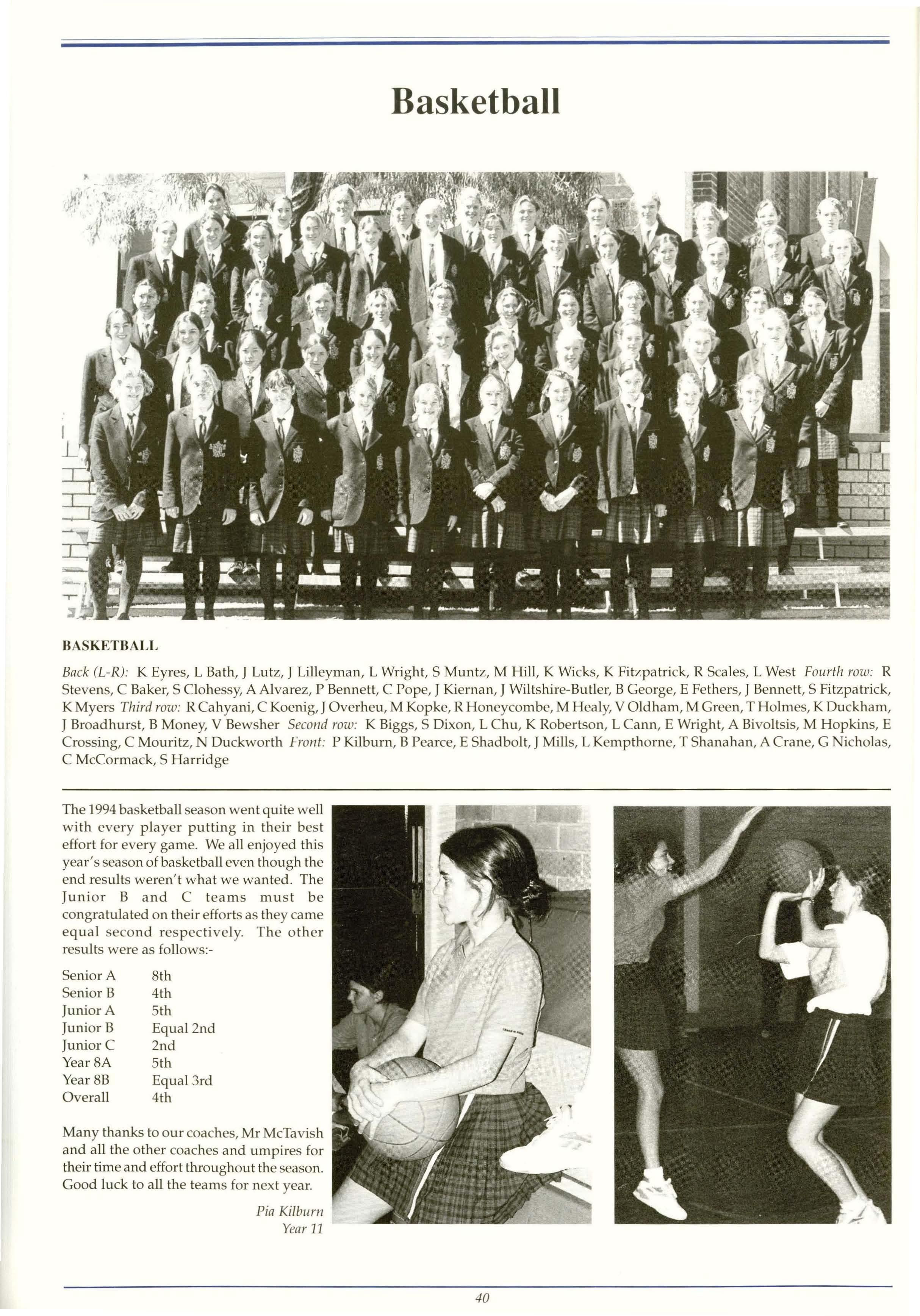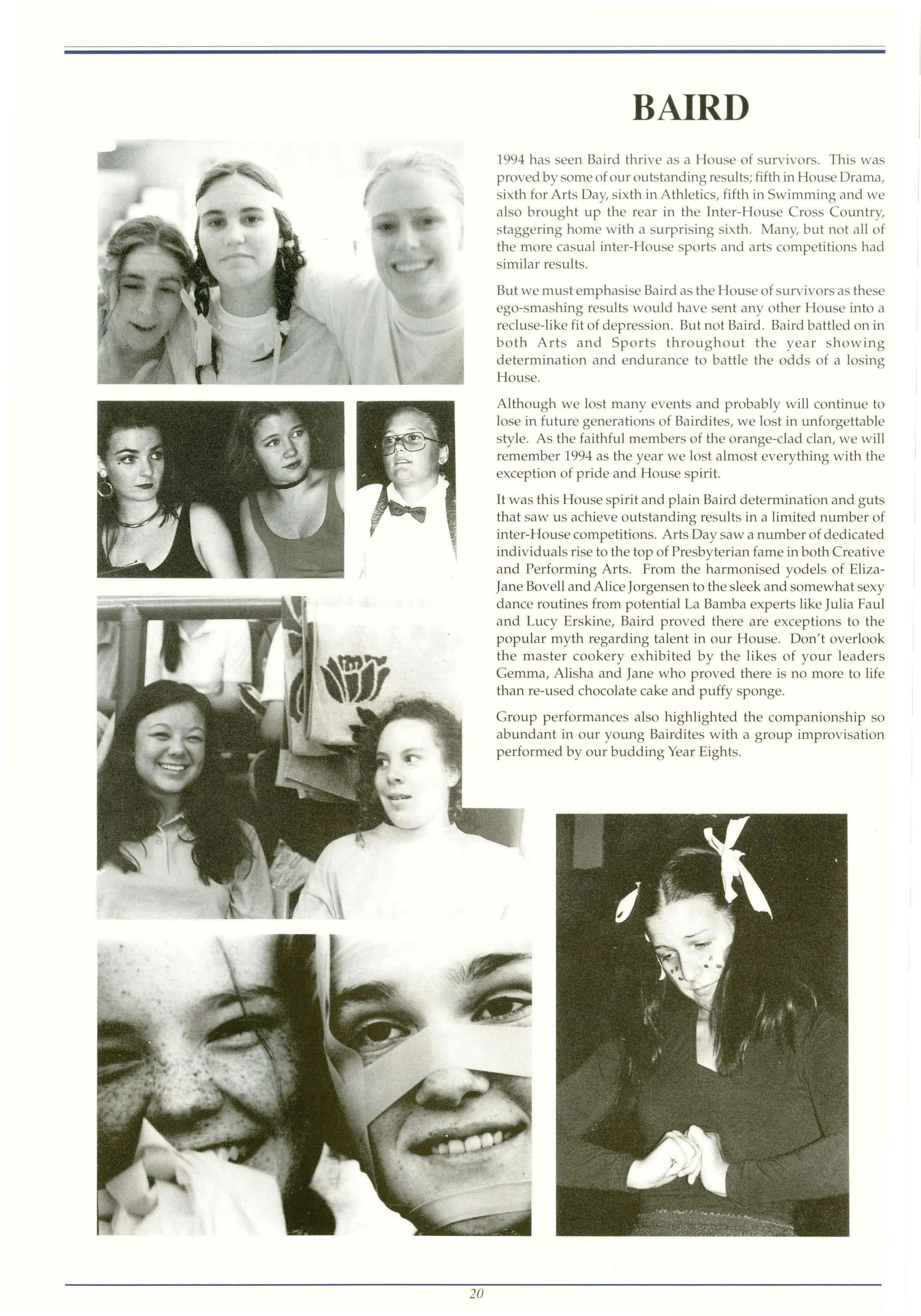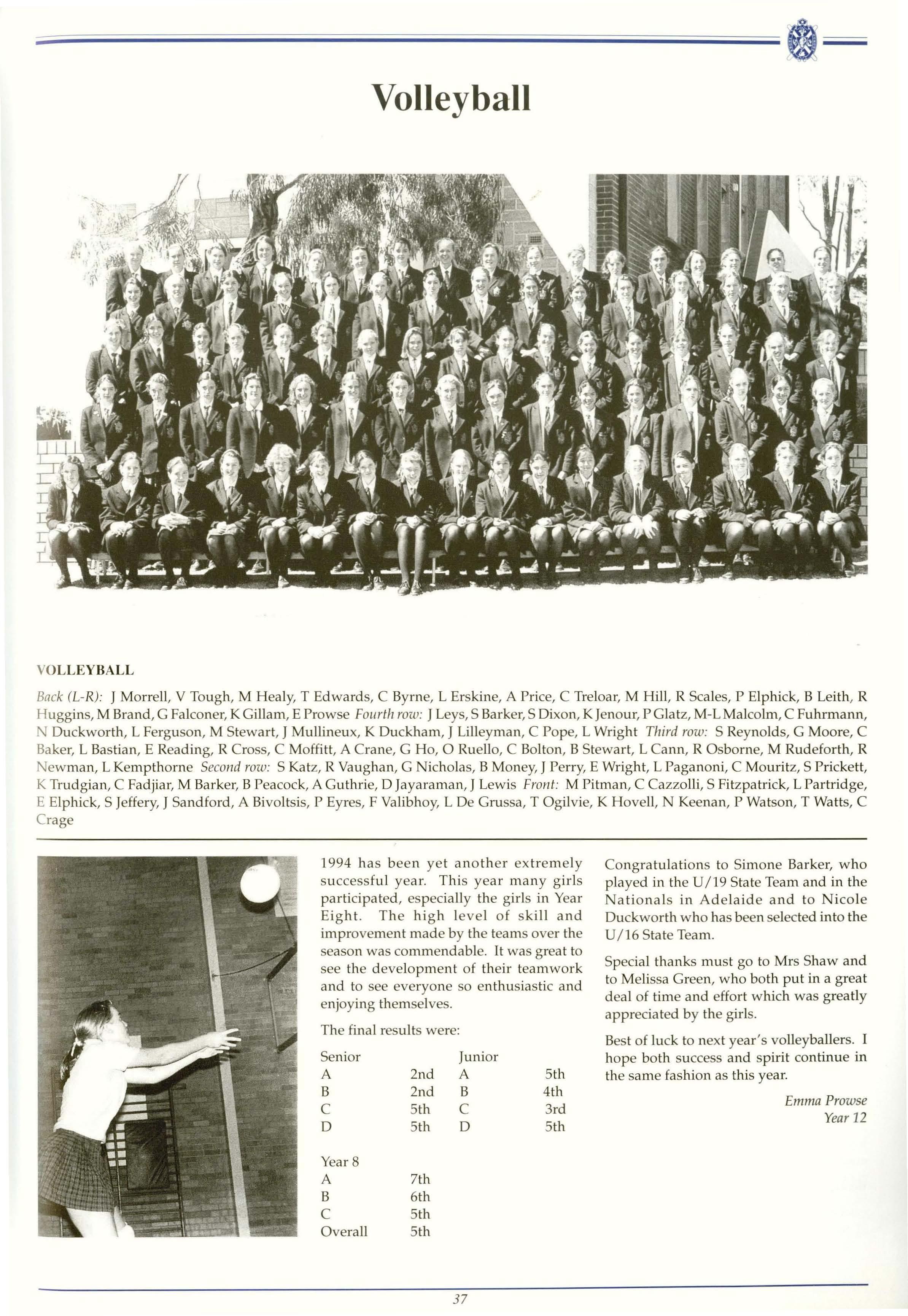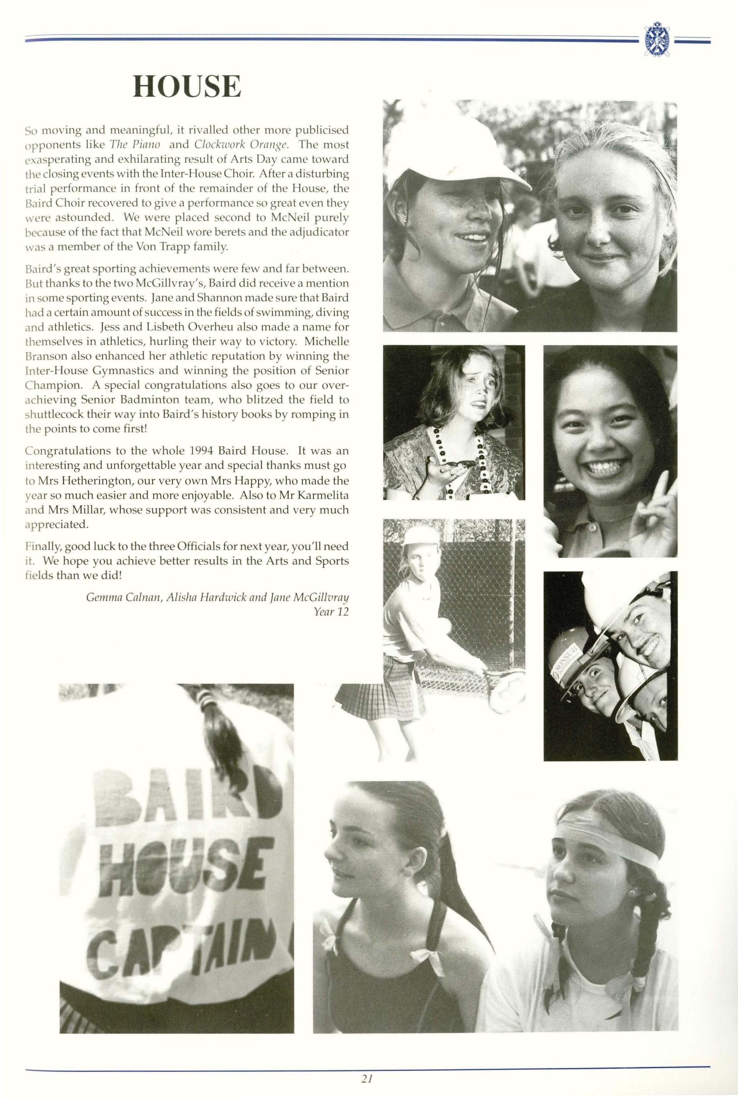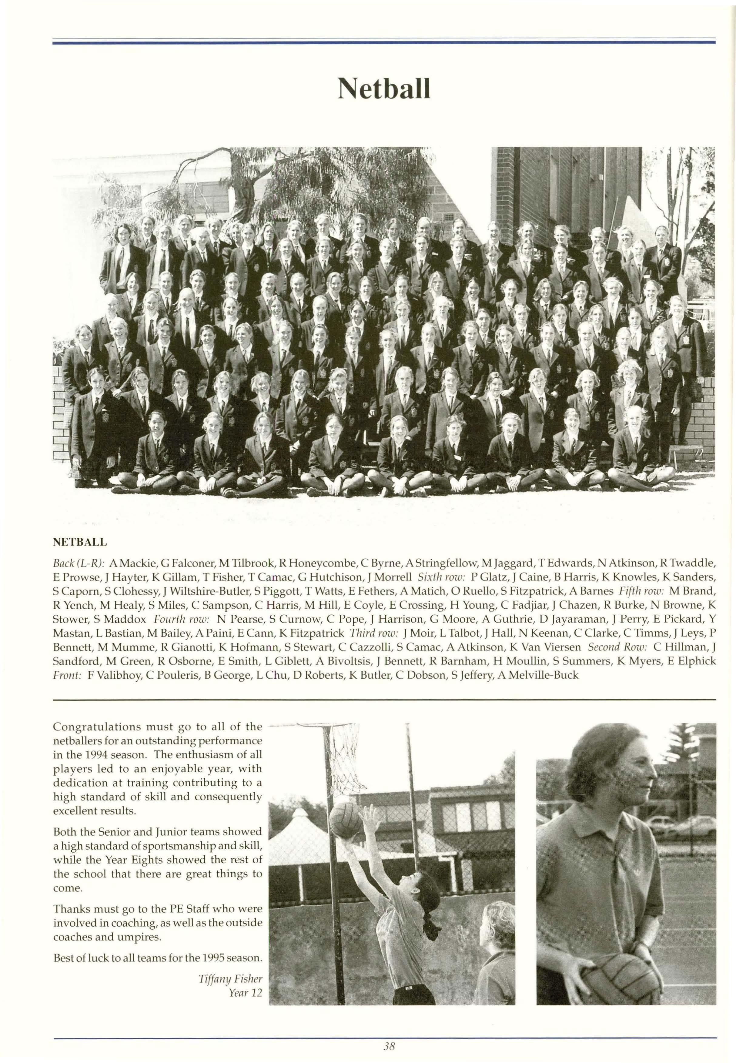 I am pleased to report the extension and enhancement of the physical education and sport programmes in the Junior School in 1994. An Inter-House competition has been introduced. The younger girls have also been given the opportunity to train with the older girls for Inter-School competitions.