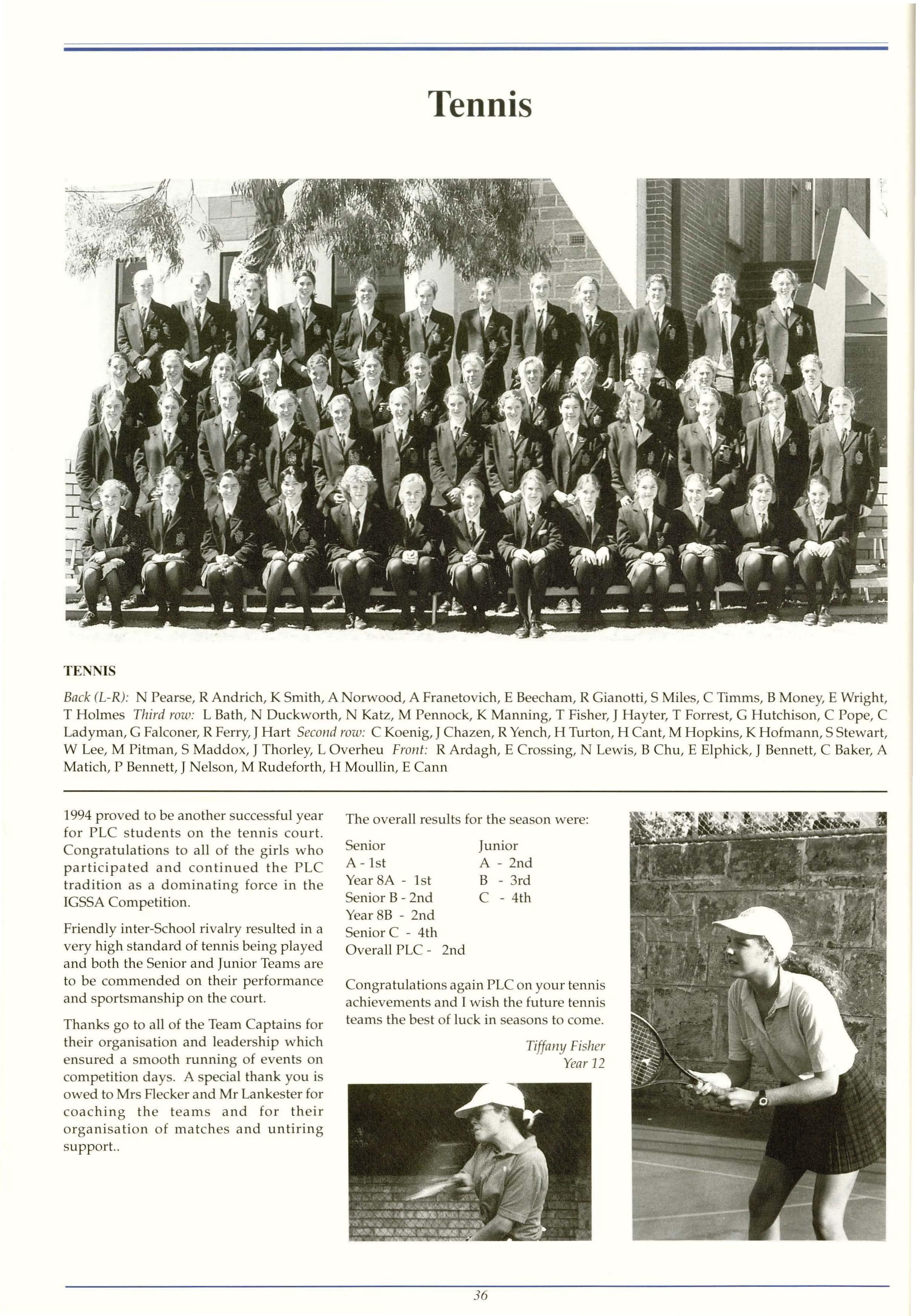 It was great to win the Slazenger Cup for Tennis. This cup has been presented annually since 1914, the year before PLC was established as a school for girls. We won it in 1915, and on 11 other occasions and now again in 1994.