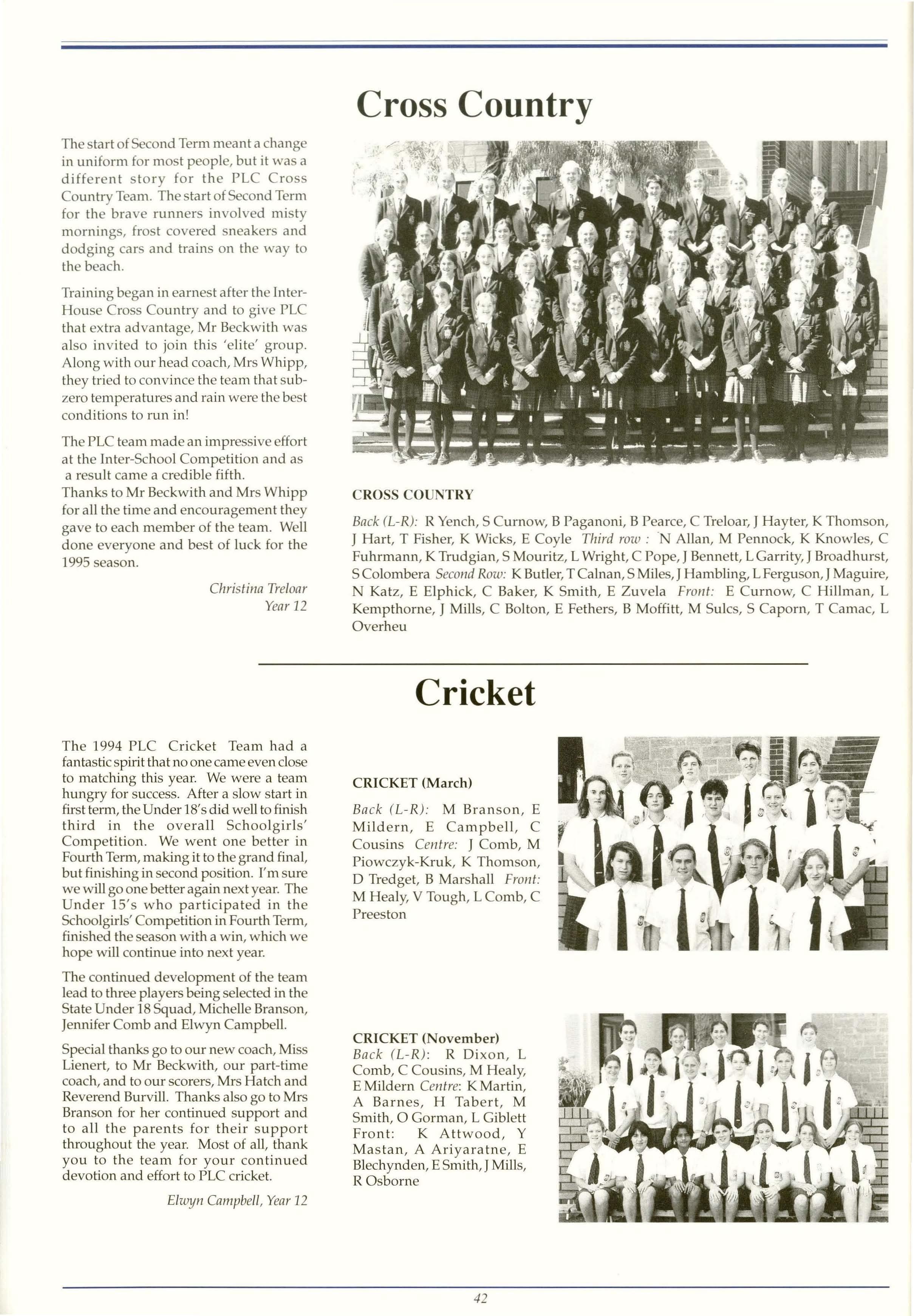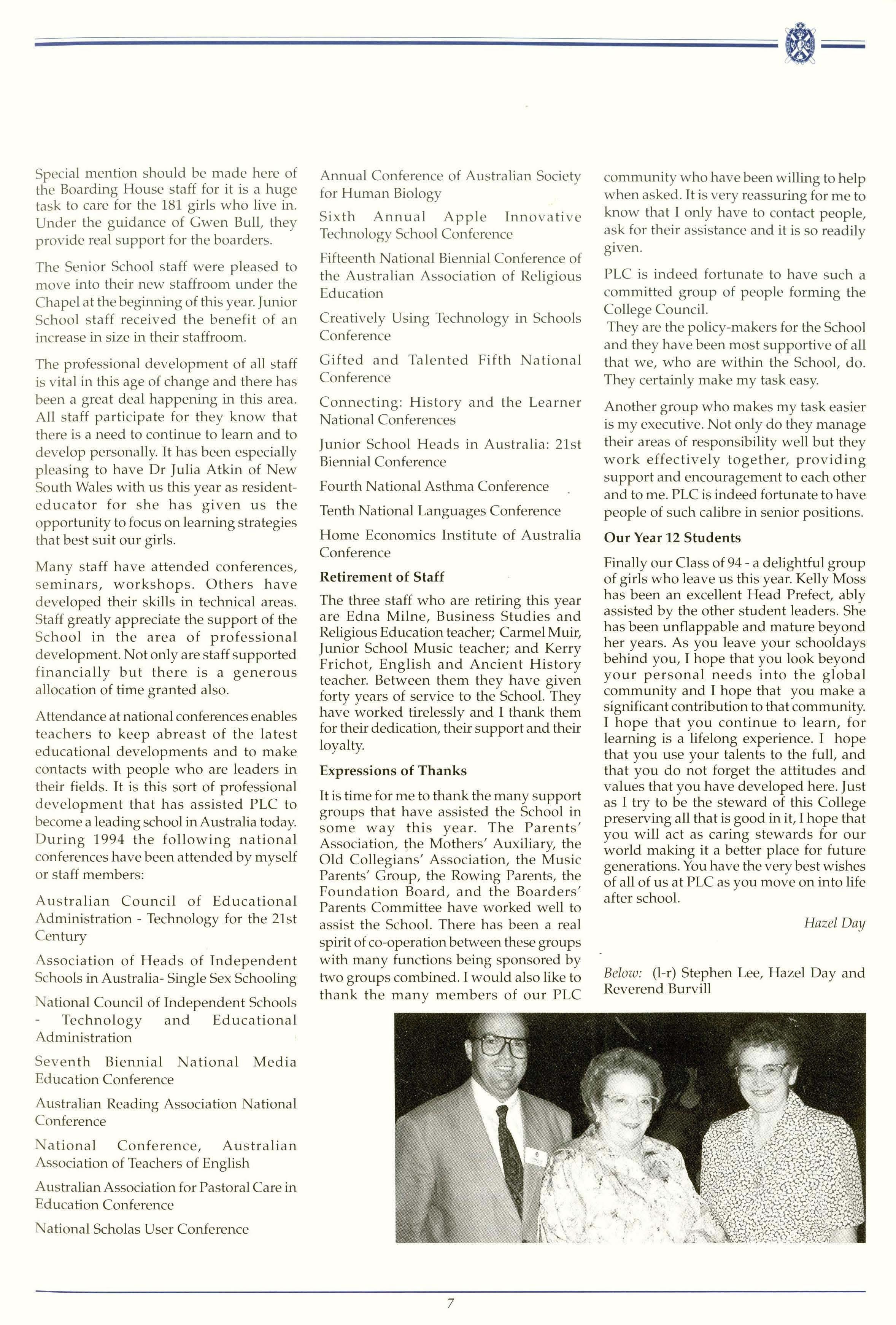 A ttendance at na tional conferences enables teachers to keep abreast of the latest educational developments and to make contacts with people who are leaders in their fields. It is this sort of professional development that has assisted PLC to become a leading school in Australia today. During 1994 the following national conferences have been attended by myself or staff members: