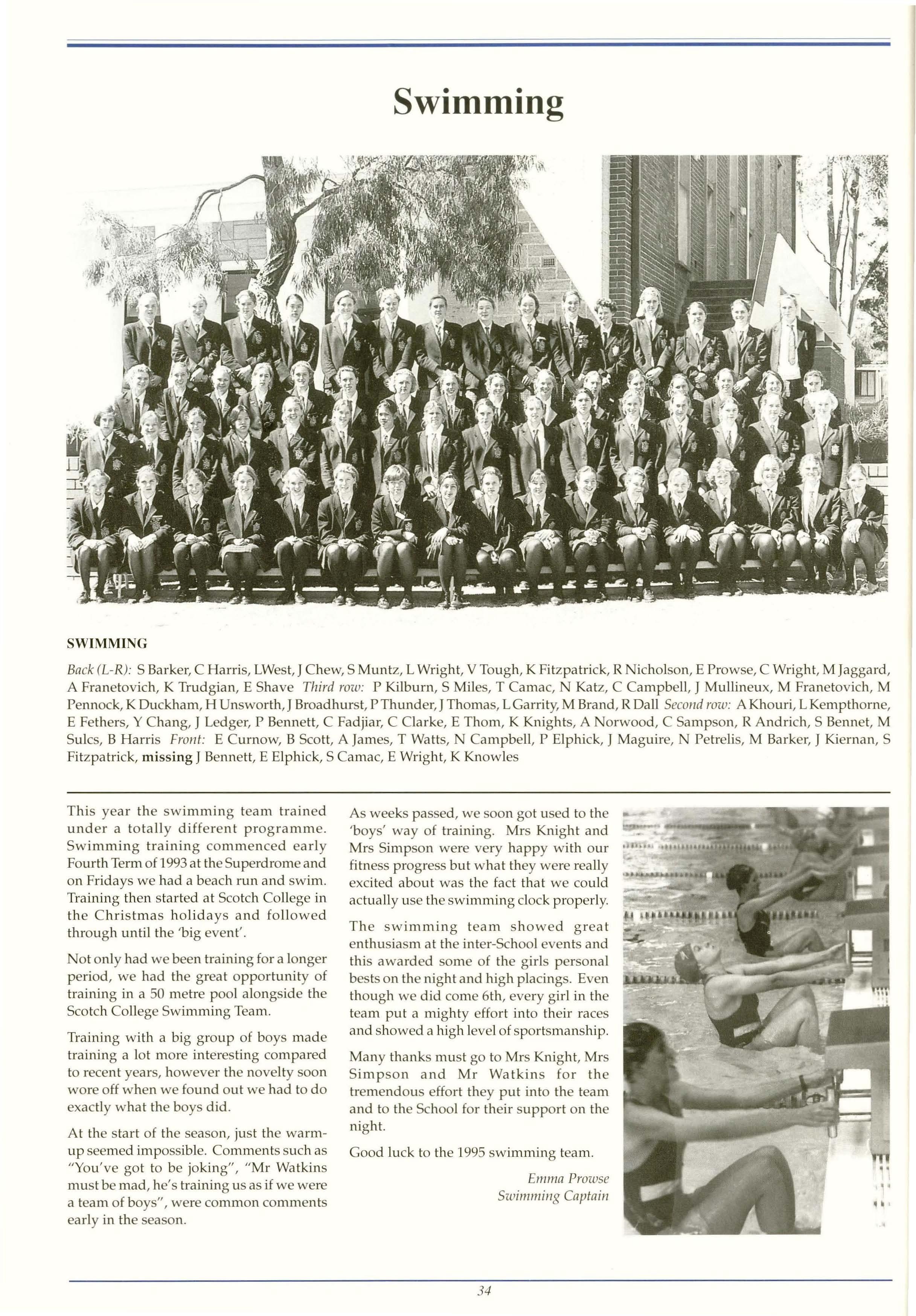 To this end a full-time Director of Outdoor Education was appointed at the beginning of 1994 with this brief and I am pleased to report that this programme is proceeding well. With the acquisition of the BlackwatchAquatic Centre, which is a joint venture with the Scouts' Association due for completion during 1995, further opportlUlities will be provided for our girls in aquatic activities.