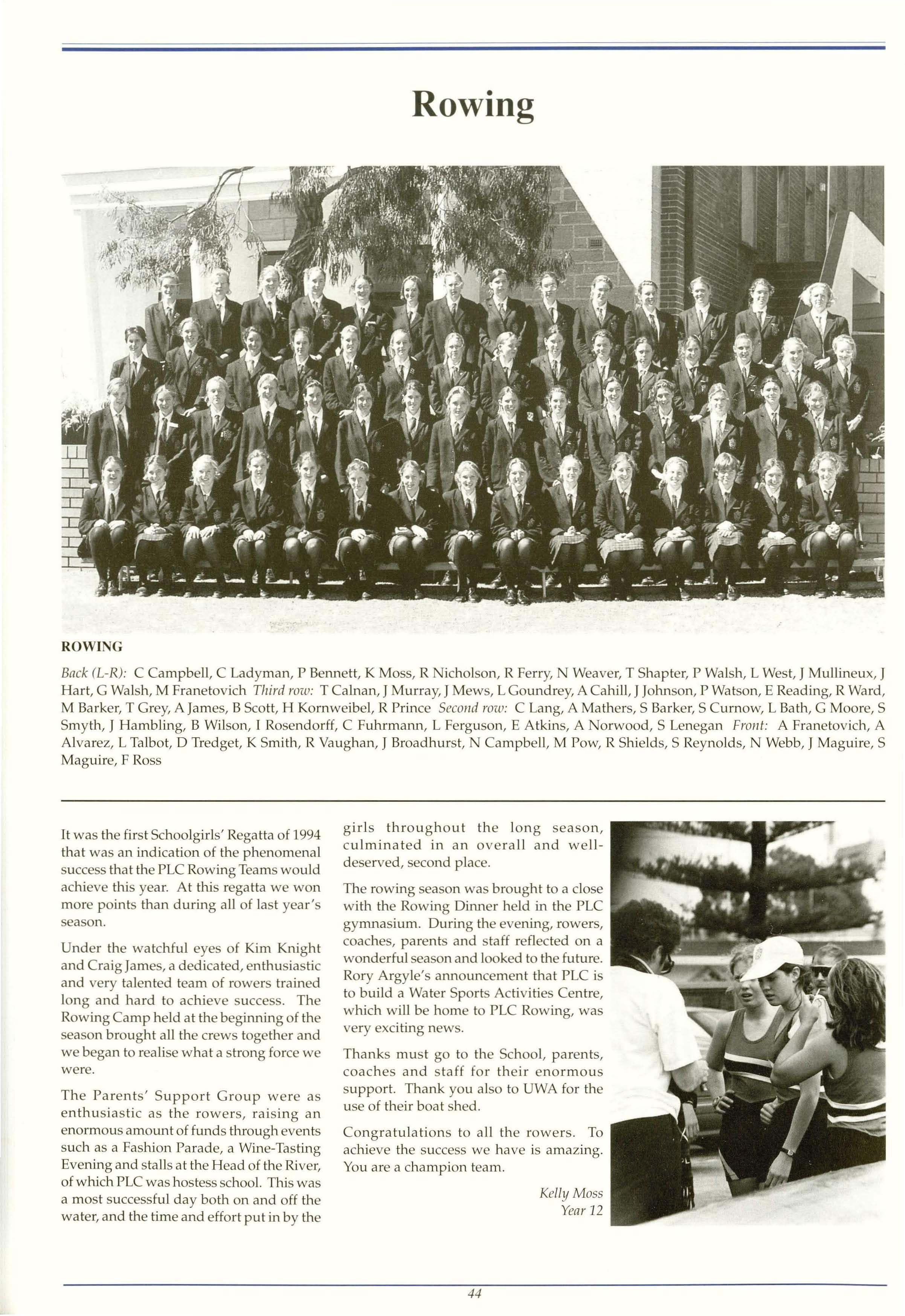 I have made mention of the many opportunities to play sport that are provided, where girls learn among other things, the value of teamwork. Rowing is reputed to be the ultimate team sport and if this is so, our success at rowing this year has shown us to be real team people.