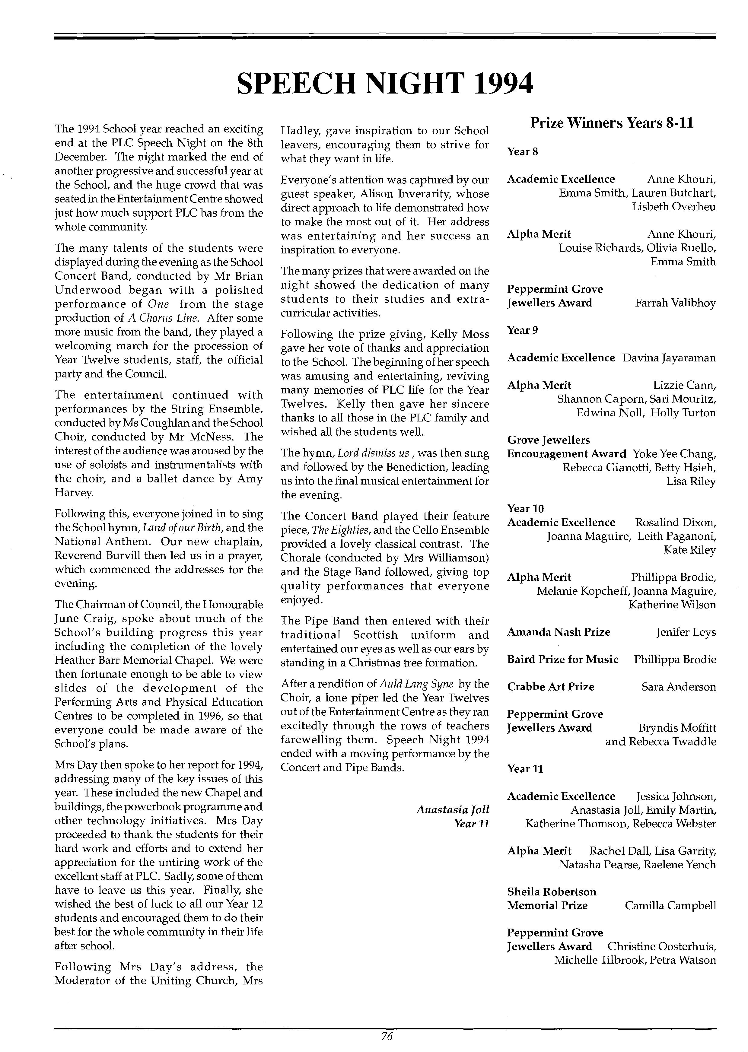 PRINCIPAL'S SPEECH NIGHT REPORT
