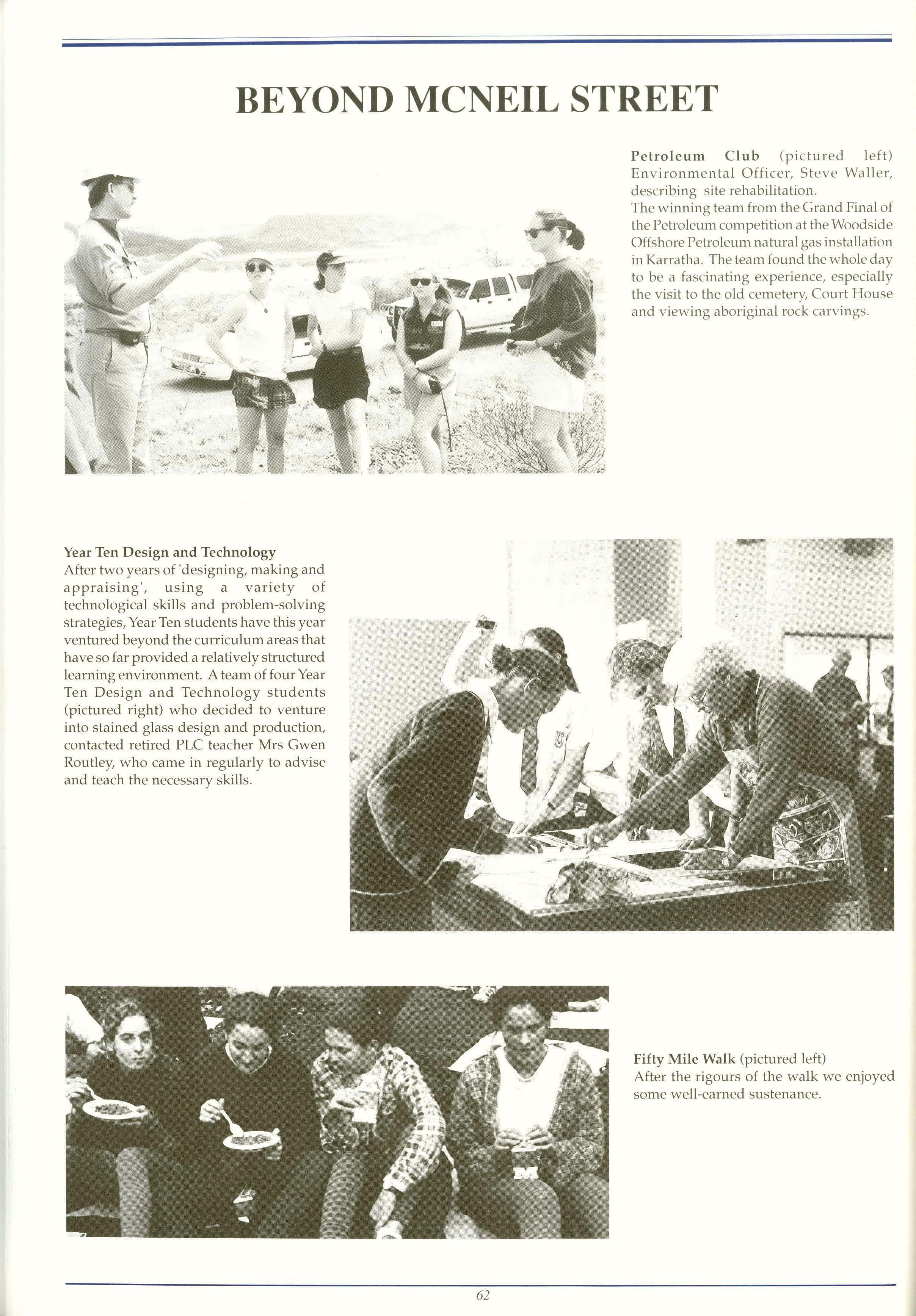 Planning has now begun for our Science, Design and Technology extensions which I hope will commence late in 1995, once the Performing Arts Centre and Physical Education Centre are finished. These buildings will not only provide up-to-date facilities for the key learning areas of Science and Technology but should also become the focus for our Middle Schooling.