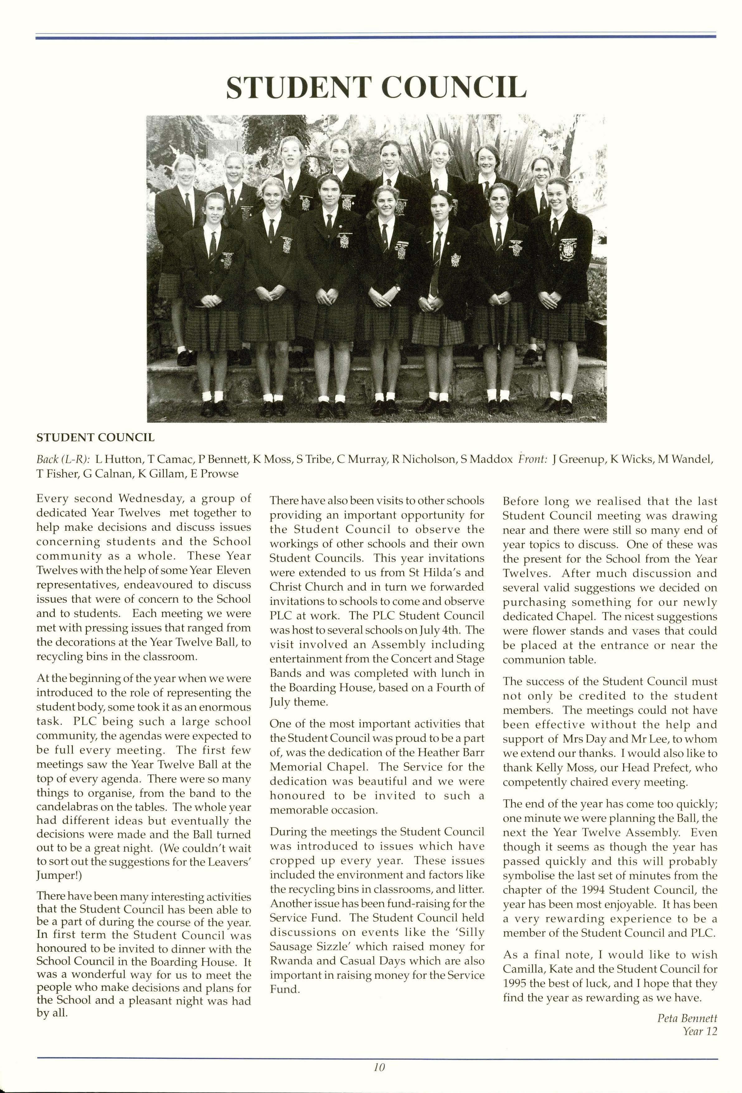 Our girls are encouraged to participate as fully as they can at school, for it is the student who takes the most opportunities, who benefits most from a school such as PLC Tonight you will see how many girls participate in musical activities. At the last Council meeting, Council members were shown a video made by two of our Year Twelve media students of sport at PLC They were also shown the participation rates in Inter-School sport in 1994. When we remember that these are voluntary activities, to have a participation rate of 67% is most gratifying. Staff members work hard to provide opportunities for girls to be involved in the many, many extra curricular activities and it is pleasing to note the extent of this participation. Well done, girls!