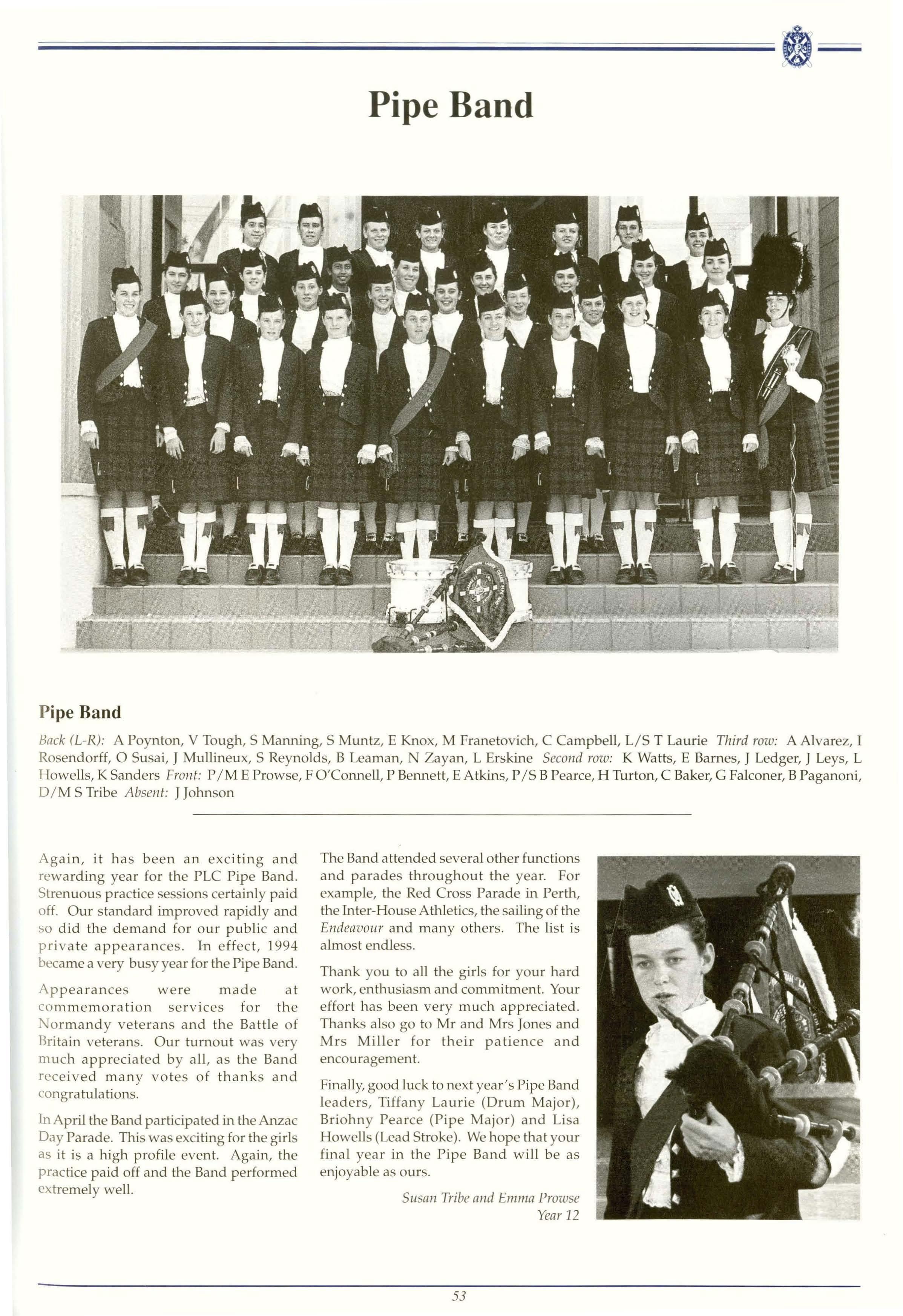 I have mentioned that music plays a vital part in the PLC programme. The fame of our Chorale and our Pipe Band means that they are invited to perform often at functions outside the school. We must be careful that this commitment does not become too intrusive.