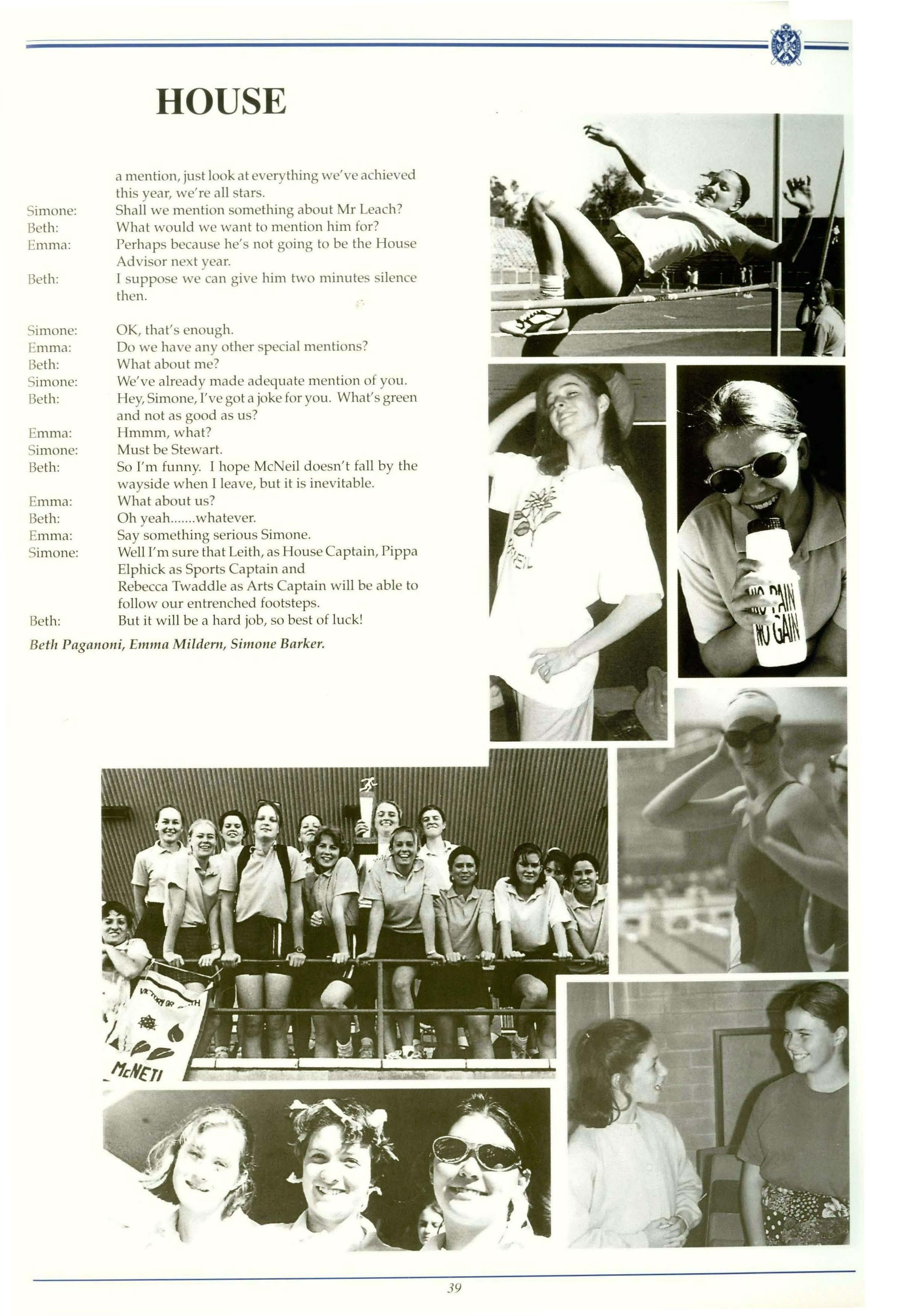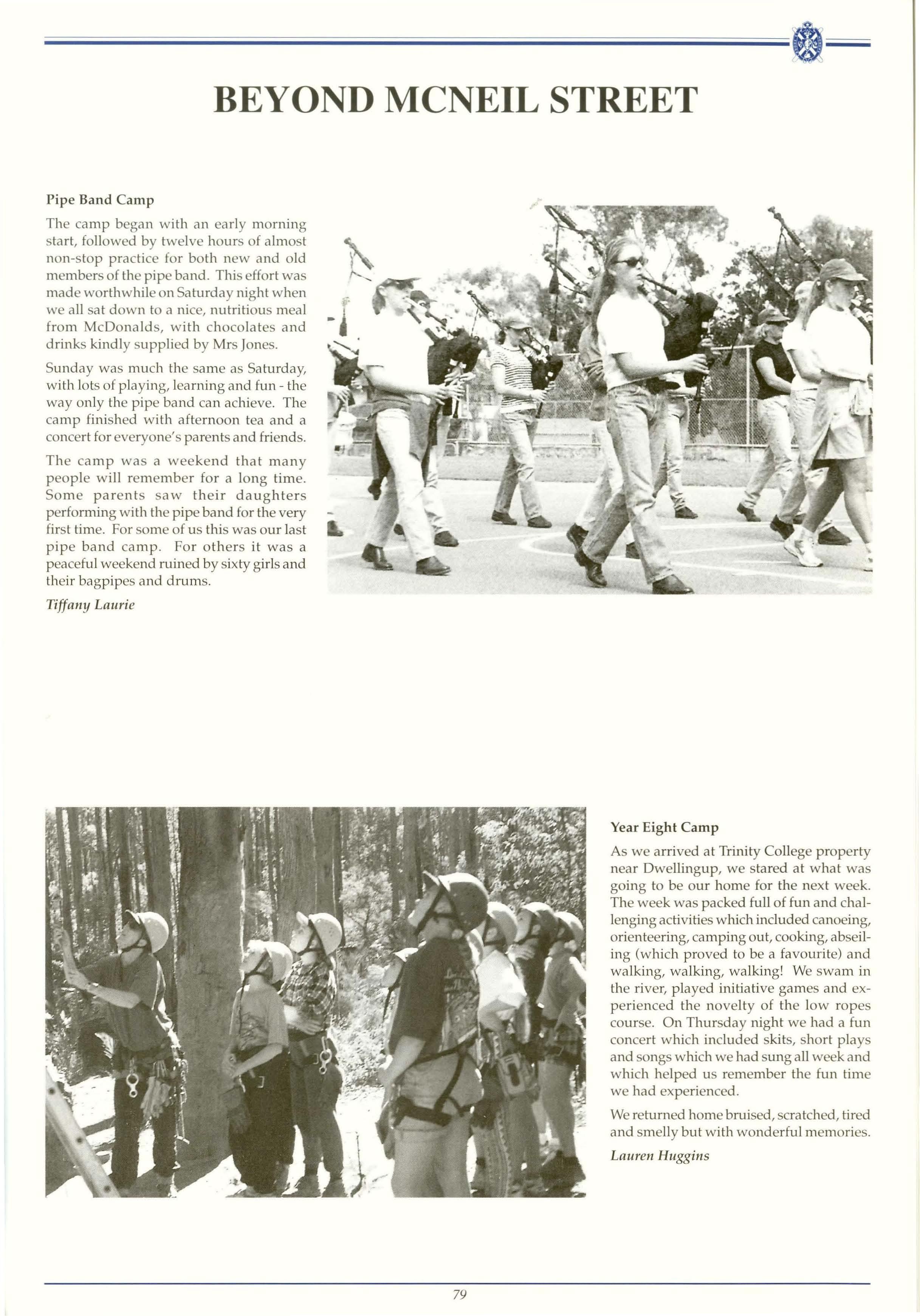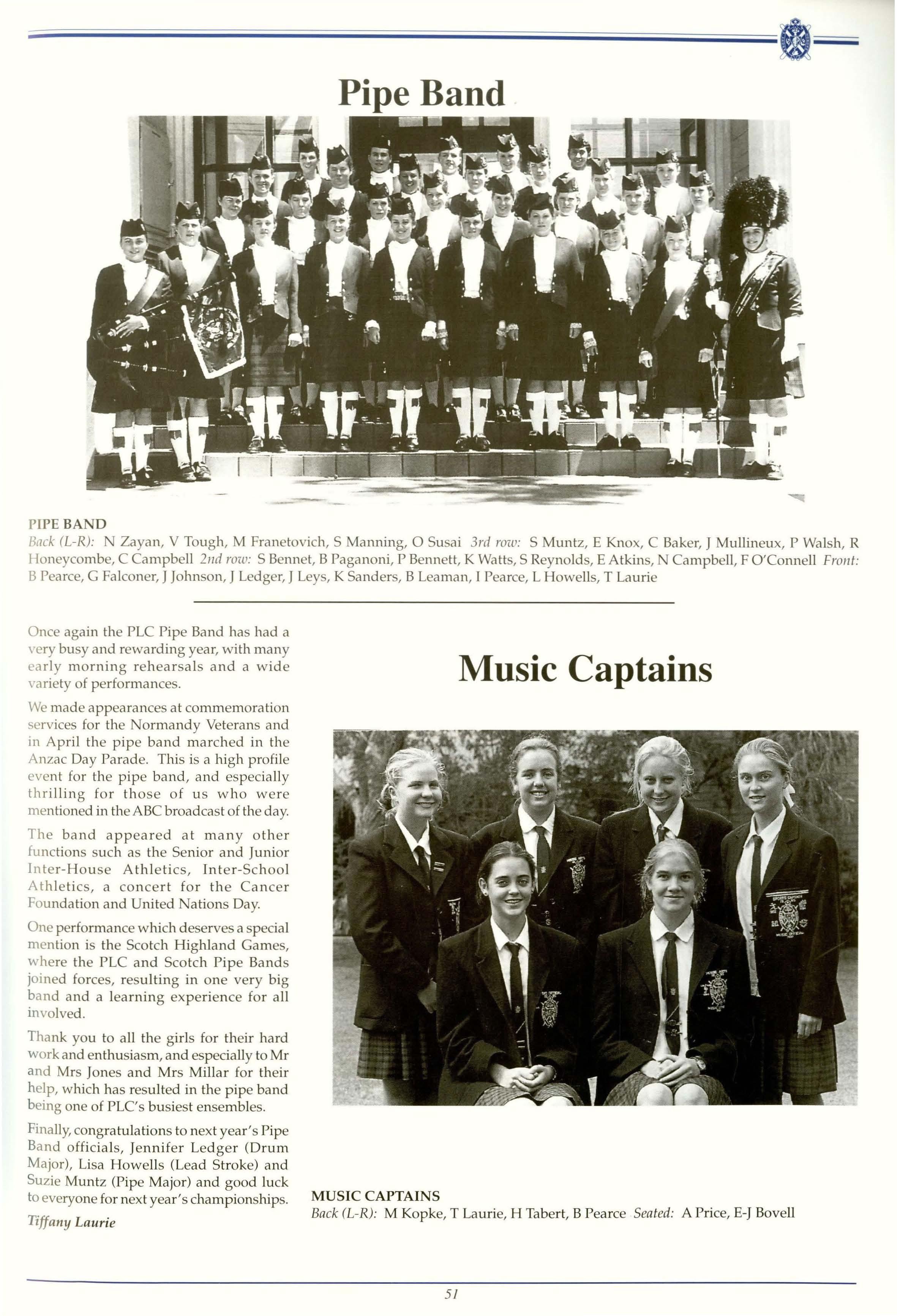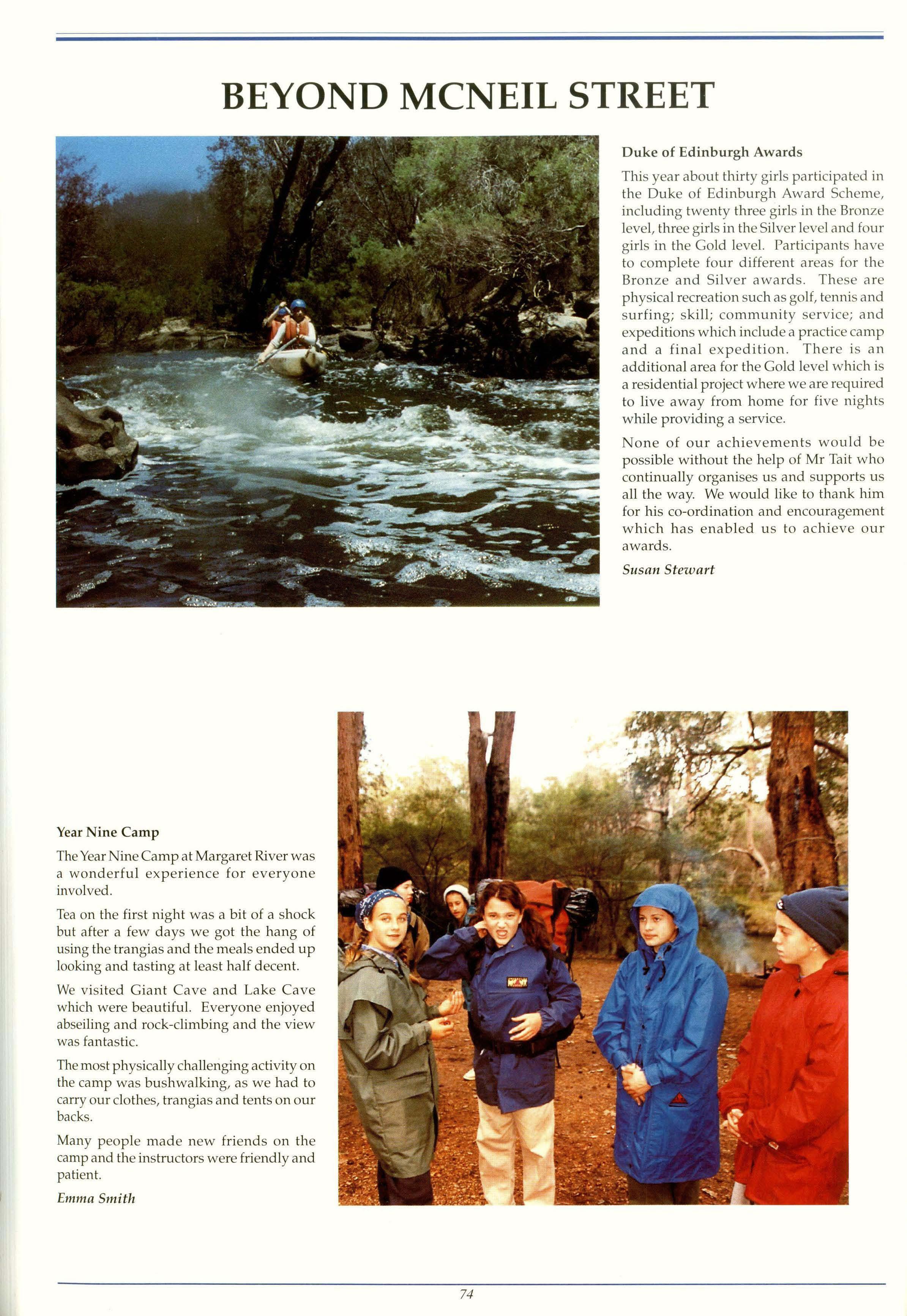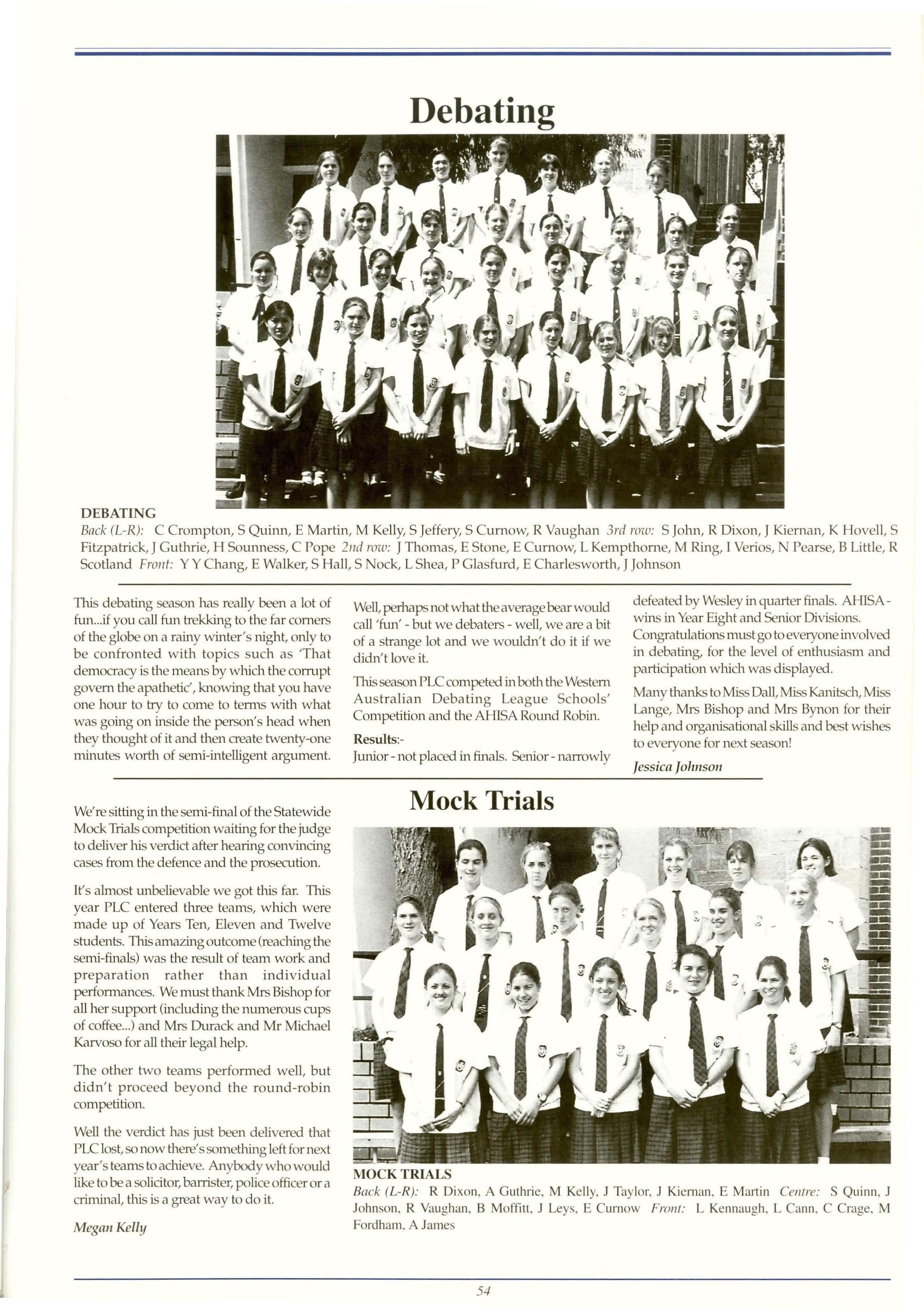 We have tried to capture every facet of experience within the PLC existence - academic, sporting, arts and community involvement. Year reports have been included this year, so that everyone may feel that there is something special for them in Kookaburra. We have also continued on from the initiative of last year's editors and created a "Beyond McNeil Street" section, a collection of accounts and photographs of students' experiences beyond the grounds of PLC.