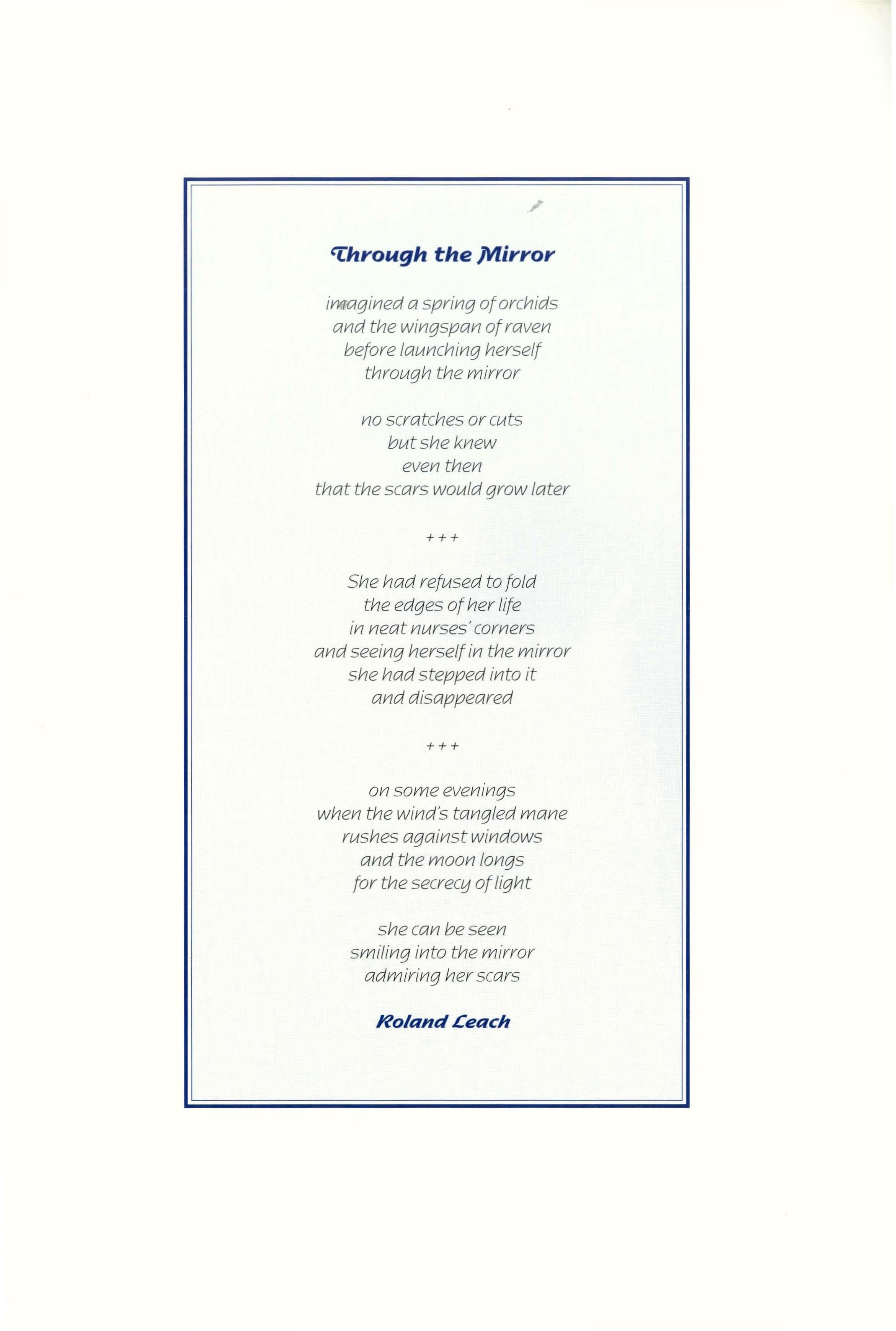 She har;( refuser;( to folr;( the er;(ges of her life in neat nurses' corners anr;( seeing herself in the mirror she har;( stepper;( into it anr;( r;(isappearer;(