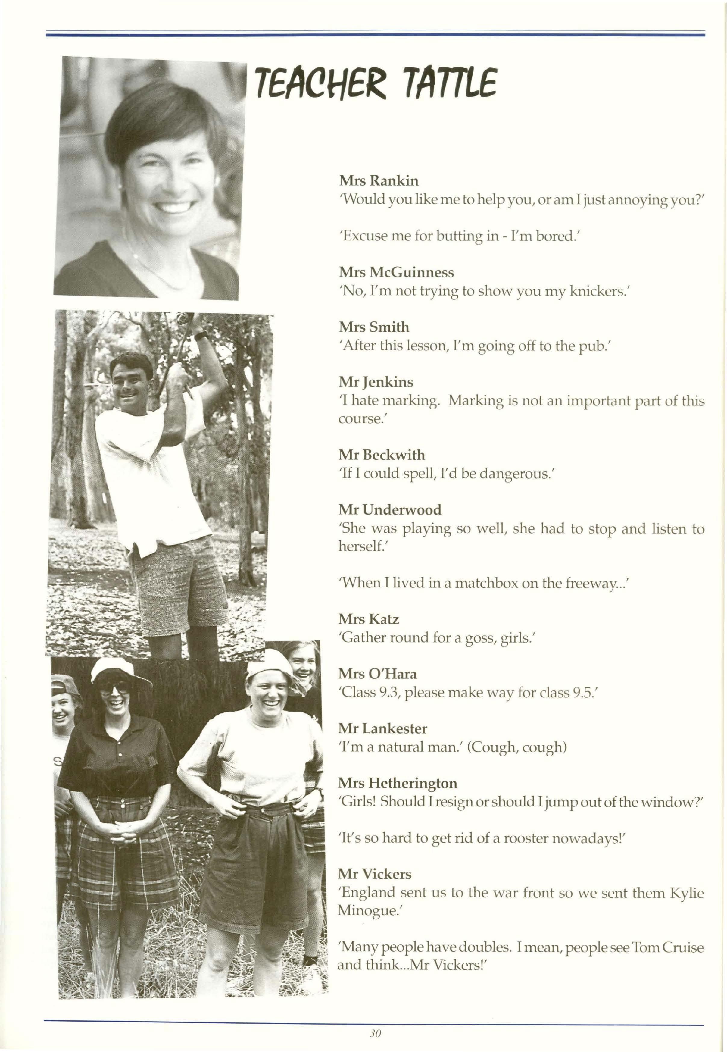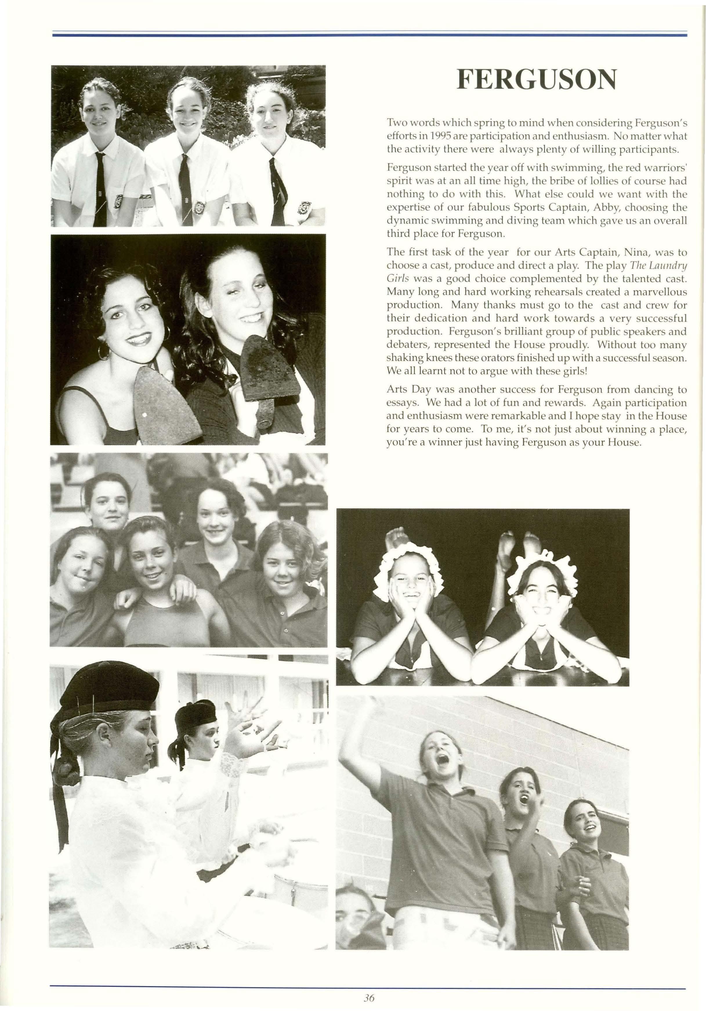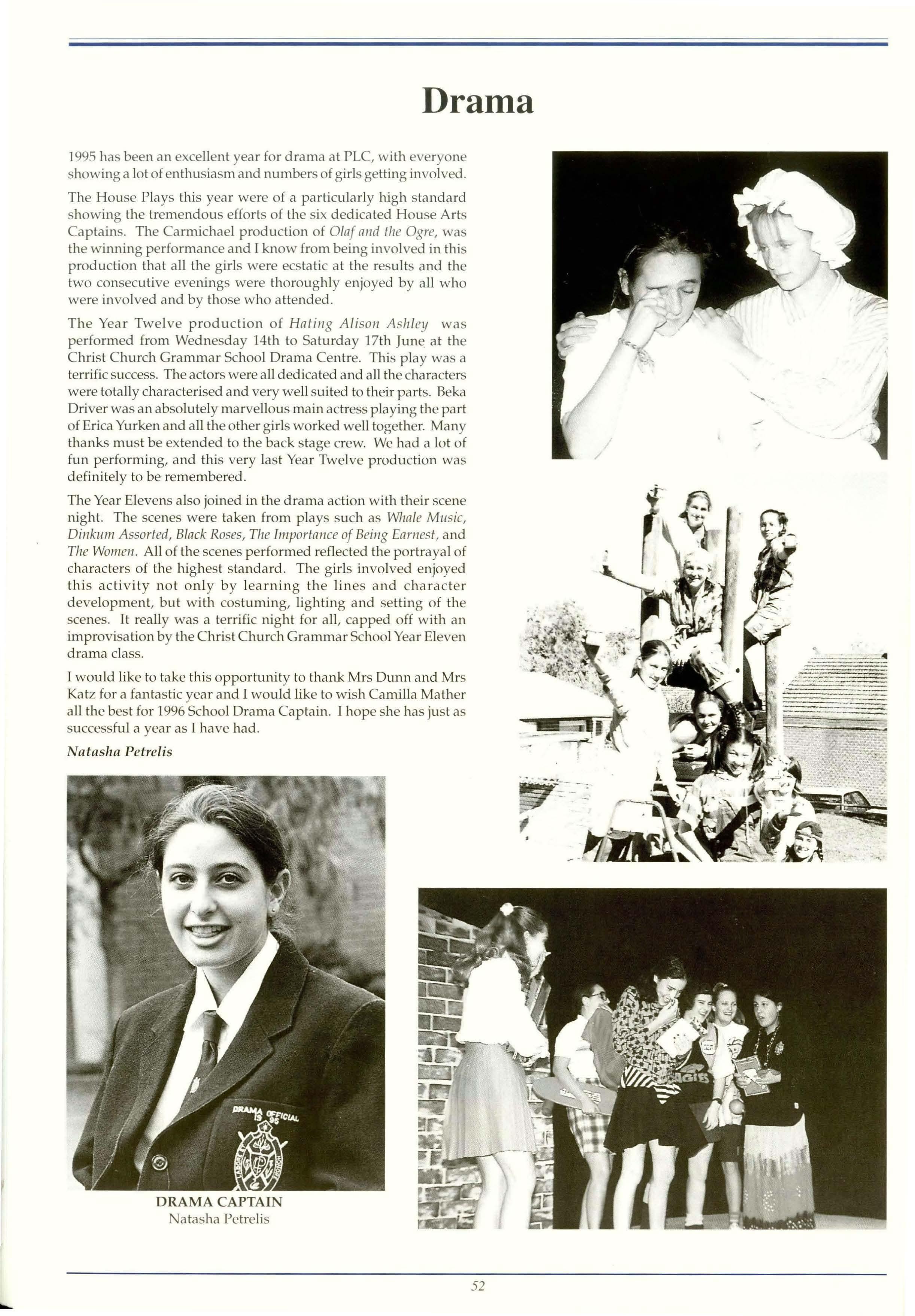 My very sincere thanks go to all the Support Groups of the School. Your assistance is very much appreciated by us in the School. It is wonderful to know that at the end of a phone is assistance available readily when we need it. I look forward to the forming of a Drama Support Group in 1996 to assist us with our new Centre and invite anyone with expertise to contact Mrs Trudy Dunn, the Director of Drama.