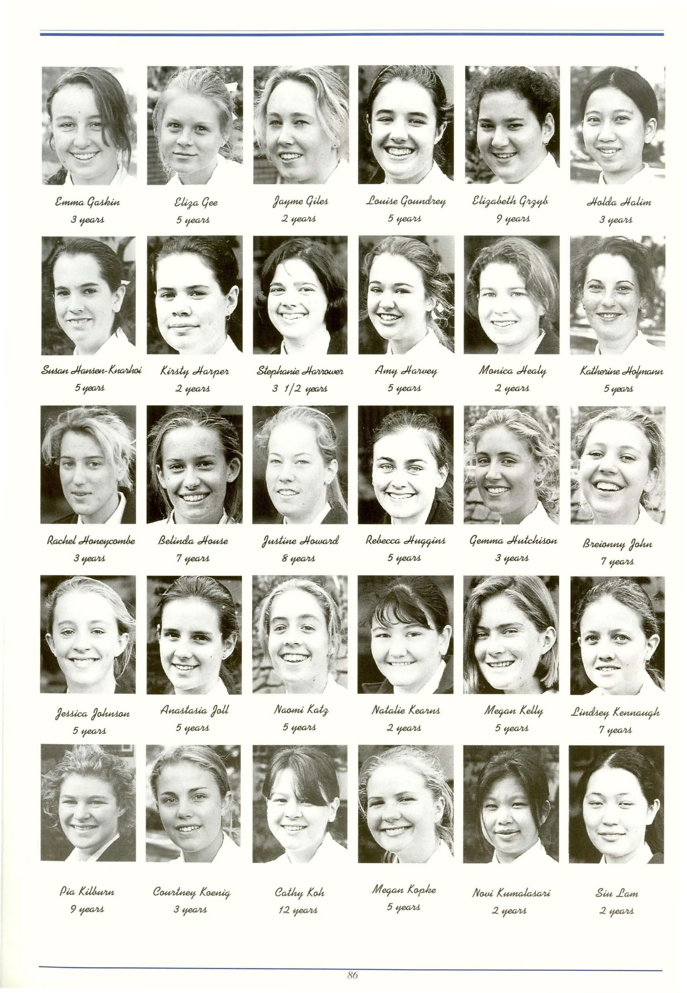 Back (L-R): P Eyres. L Kempthome, K Hovell, C Clarke, S Smyth, J MUITay, K Watts. K Sounness, S Howe, R Barham, M Smith 5Th roll': R Osborne. A Guthrie, C Pope. J Matthews, R Gianotti. E Tranter, S Schenberg, S Curnow, C Sampson, C Dobson, S Snowball, R Shields, L Talbot ยท/Th roll': S Moore, E Wright. K Smith, H Sounness. A Langley. N Duckworth, J Mullineux, J Broadhurst. M-L Malcolm, R Andrich, J HaiTison, K Sanders. S Caporn, S Maguire 3rd /VII': P Glatz, P Lawson. C Crompton, S Fitzpatrick, L Giblett, J Anderson, E Gianotti, K Richmond, J Bennett. E Elphick, F Yalibhoy, L Bath. S Maticevic, A James, T Schenberg 2nd IVII': A Thorley. E Curnow, C Hillman, E Fethers, HAndrich, C Baker. R Stevens, L Cann. K Newcombe, R Thomas, R Cross, M Rudeforth, S Prior, M Zeng, T Shanahan. L Lapsley Frollt: K Mathers, K Hewitt, T Grey, M de Leo, C Purse, E Charlesworth. B Stewart, A Gaunt, C Bolton, B Wilson, G Lilley, A Duzevich, A Lewis, A Fordham, L Shea, M Seymour, SWard