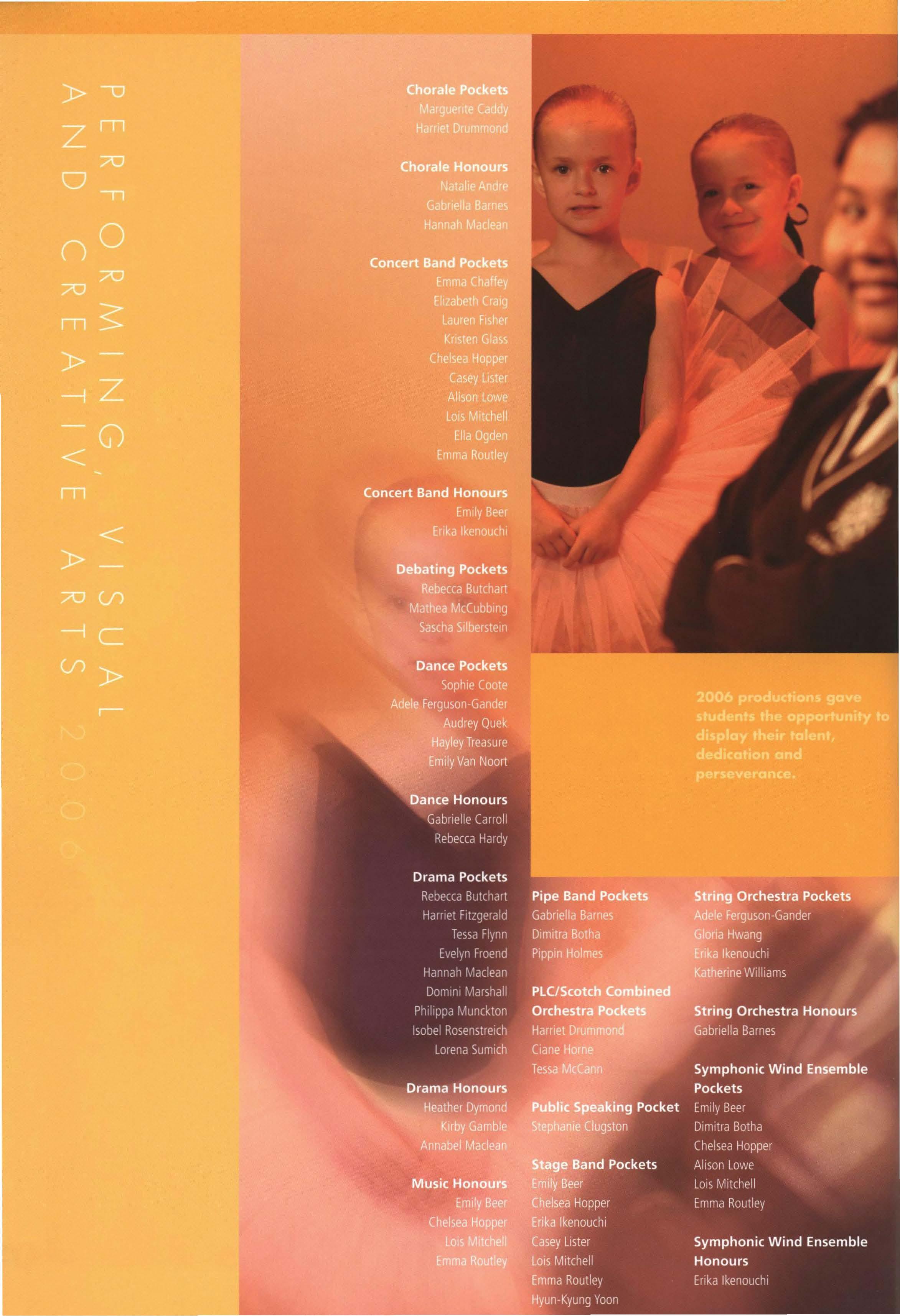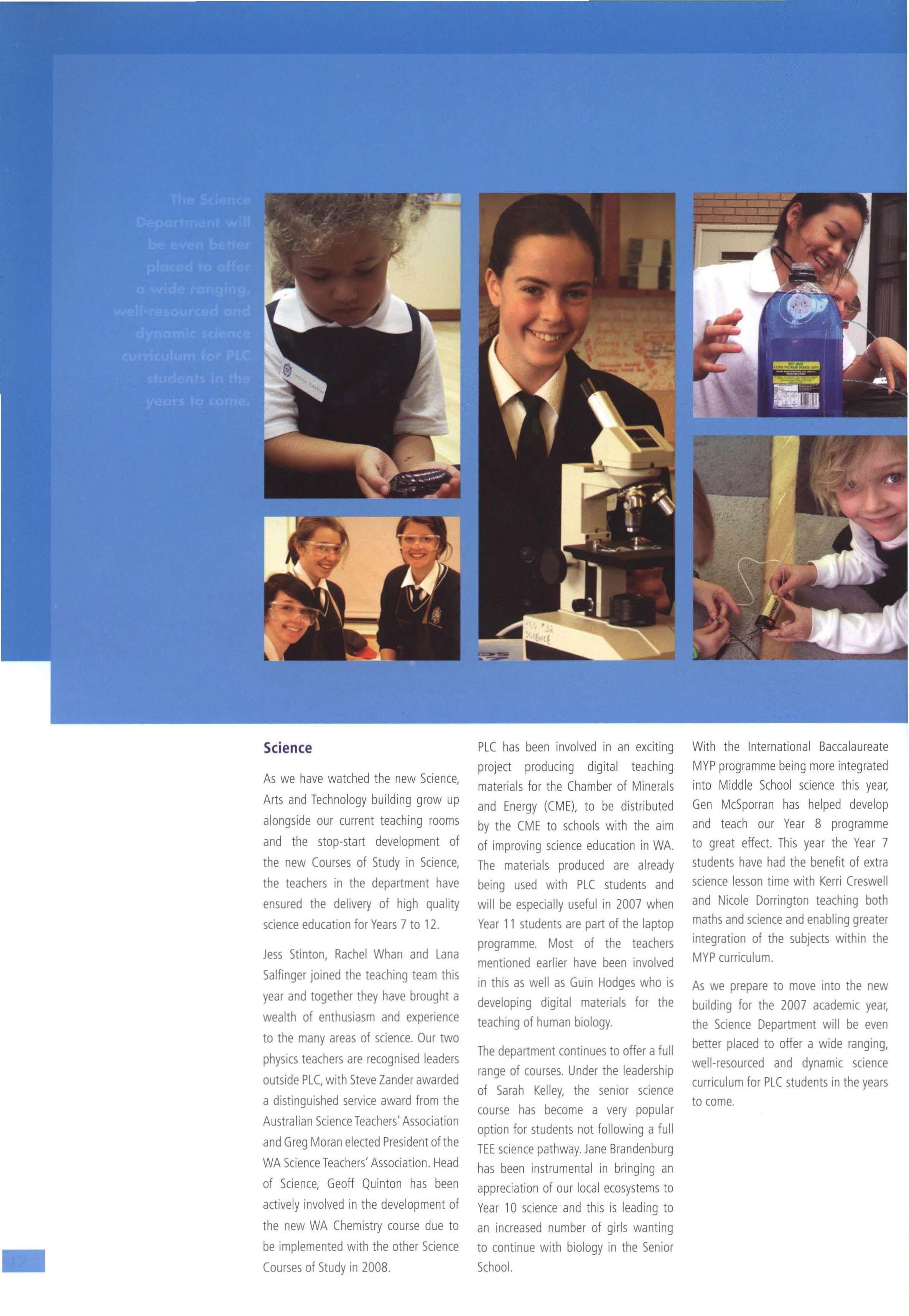 Congratulations to the Student Council for 2007. To Milly Young, the new Head Prefect, I wish you every success for 2007. It will be a very busy year but more than anything it will be rewarding.