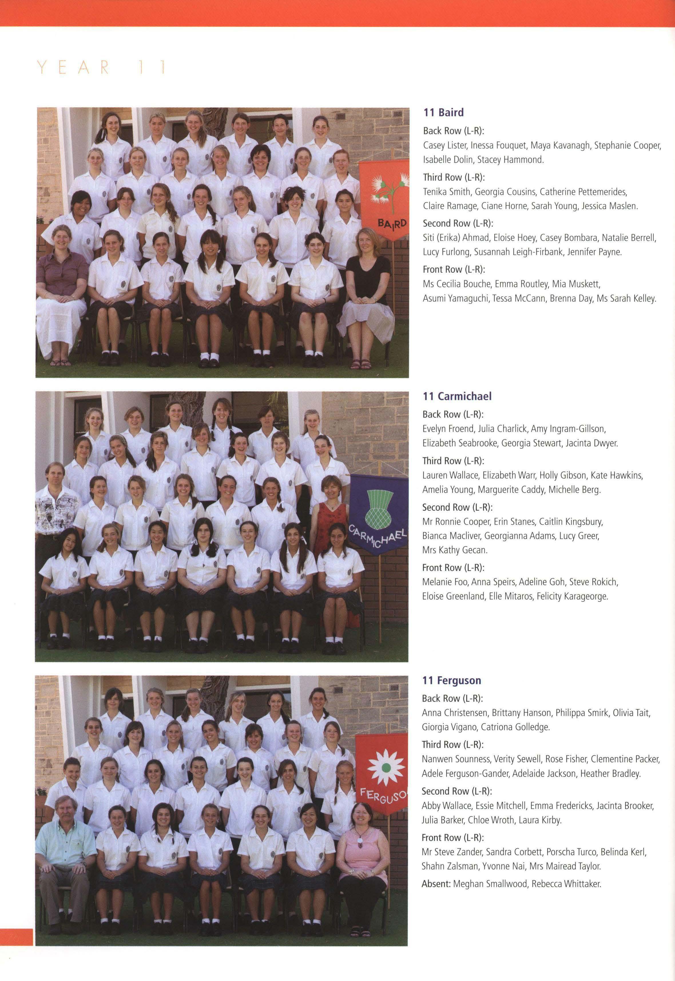 Girls mentioned in above poem are: Lauren Keightley, Jessica Walker, Elle Mae Yu, Elle Macpherson, Emma Crisp, Chelsea Hopper, Krystal Cotterill, Louisa Bahen-Wright, Emily Meneghello, Gabriella Barnes.