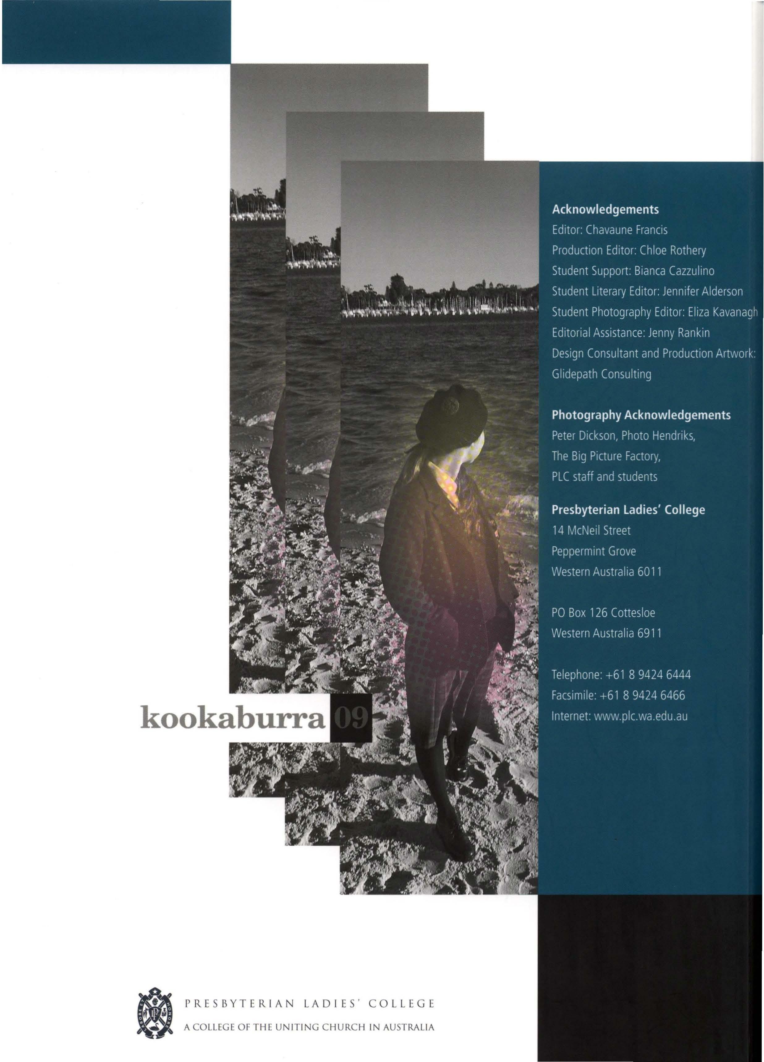 Most importantly, thank you and farewell to all the amazing Year 12 girls who helped to make our final year so successful, memorable and so much fun. We will miss each other in the years to come but hopefully the following colourful pages of our 2009 Kookaburra will preserve a little something from each other to cherish.
