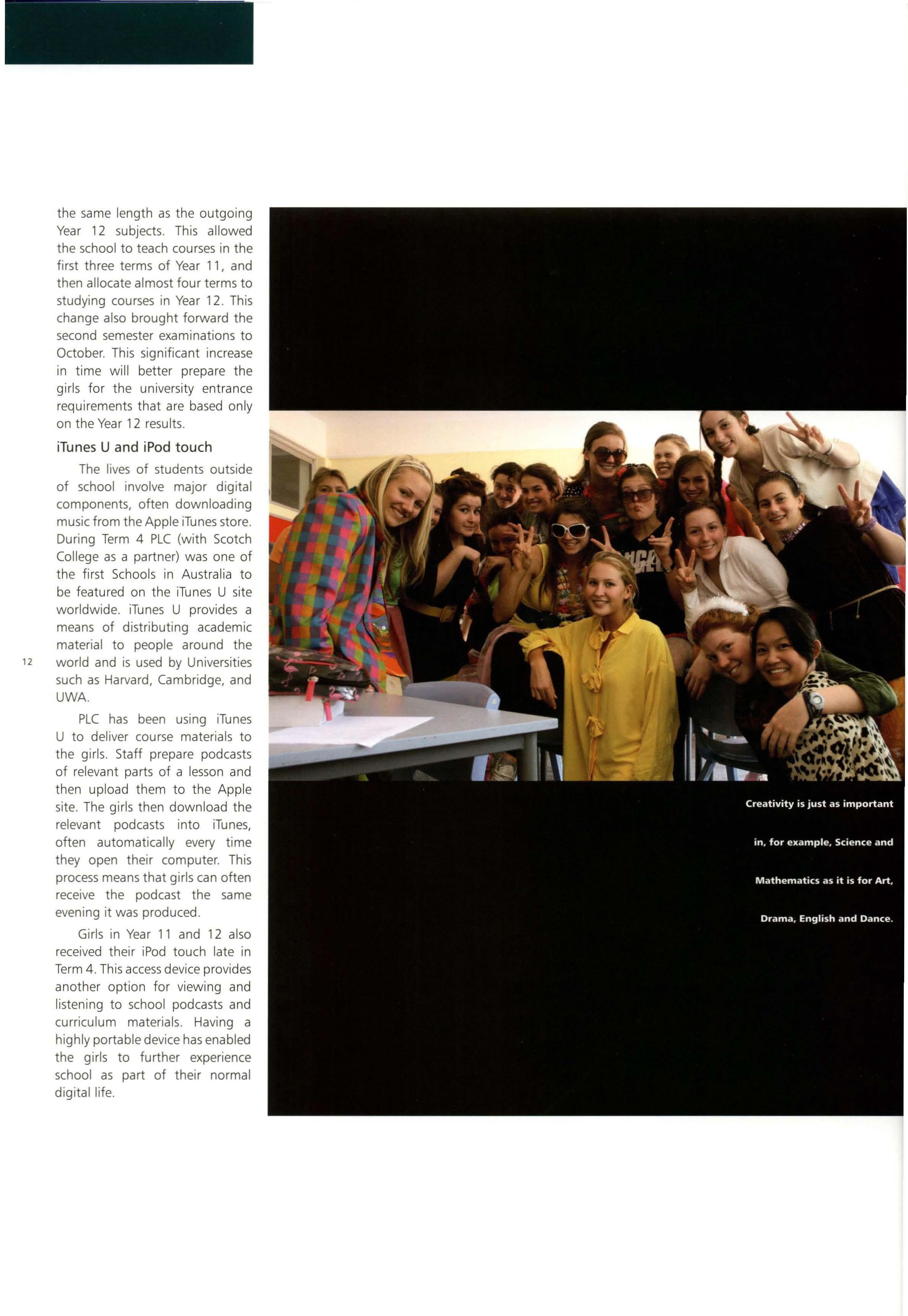 Technology also offers the opportunity not only to learn about the world but also to interact with it. 2009 marked the launch of a PLC Scotch College presence on iTunes U that provides access to information and our learning environment anywhere anytime. We are trail-blazers in being the first independent schools in the world to deliver content through iTunes!