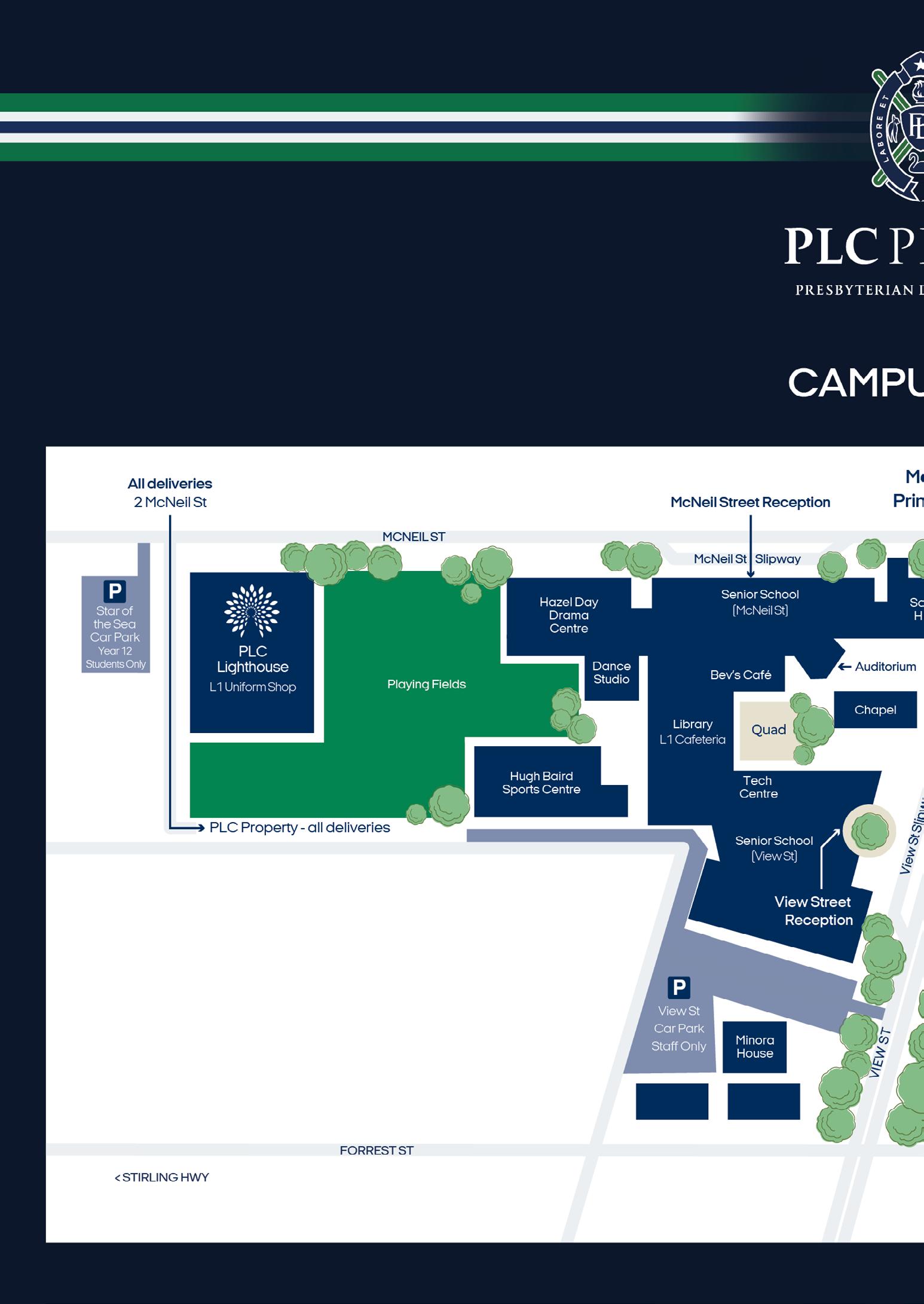 Students are discouraged from using the laneway from Stirling Highway to PLC. No responsibility can be taken to ensure the safety of students if they do not cross Stirling Highway at the attended crossing.
