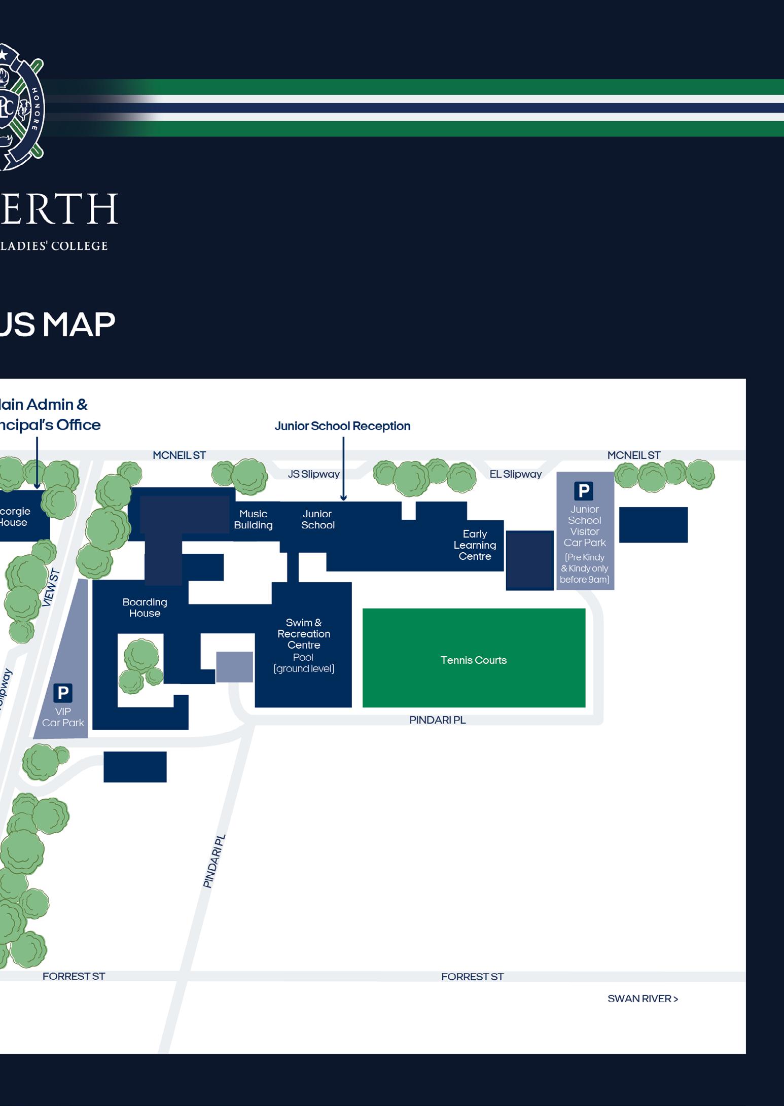 Students travelling to school by bus, train, bike, or walking should cross Stirling Highway at the corner of McNeil Street where a crosswalk attendant is on duty each morning and afternoon. Students crossing View Street should cross at the designated area outside the Boarding House. Care must be taken to remember this is NOT a crosswalk.