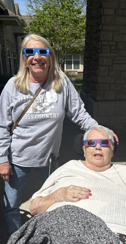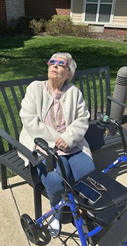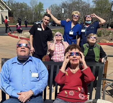 Residents and staff gathered in front of The Glen on Monday April 8, 2024 to step into the sun and view the Solar Eclipse.