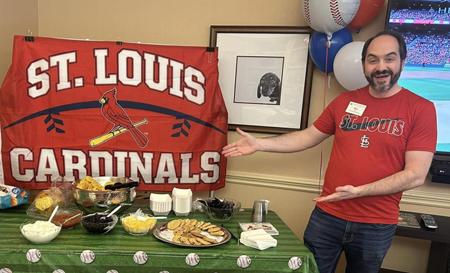 On April 4, residents and staff of Aberdeen Heights celebrated the time-honored tradition of watching the St. Louis Cardinals baseball open the season at Busch Stadium. The campus festivities included nachos, cookies, and Cardinal Punch. And the Cardinals won 8-5 against the Miami Marlins! u