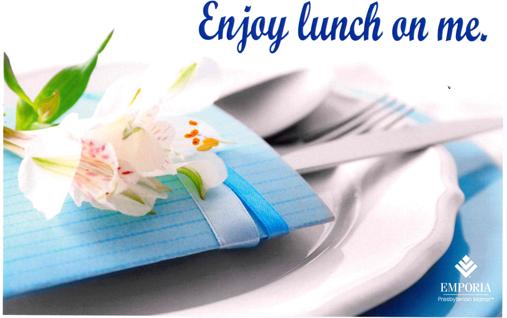 Lucky members of the local community have recently begun finding a surprise in their mailbox—a voucher for a free meal in the Emporia Presbyterian Manor dining room.