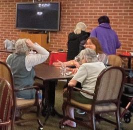 She loves getting a bite to eat and taking part in the many group activities offered here.