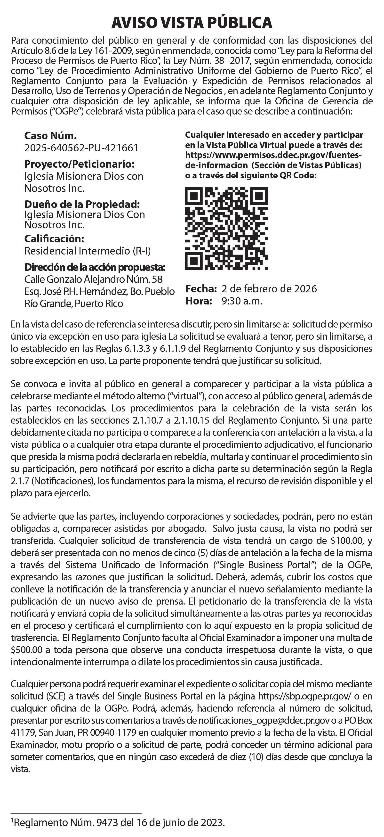 Y SE DISTRIBUYE EN LA REGIÓN NORESTE DE PUERTO RICO
