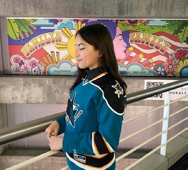 Alyssa has a mural on display at the SAP center titled "Pamilya," which celebrates her Filipino and American heritage and is an ode to all immigrants who found themselves in San Jose.