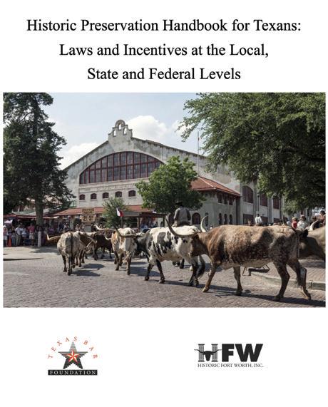 Provide preservation law and policy training. We have been entrusted with Historic Fort Worth's Historic Preservation Handbook for Texans: Laws and Incentives at the Local, State and Federal Levels, funded by the Texas Bar Foundation, which we will update regularly and make available online for our members. This Handbook will provide the basis for training programs that will also include content about new preservation policies and positive developments in the field.