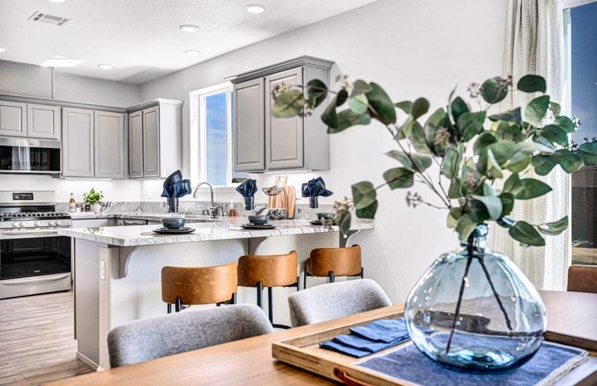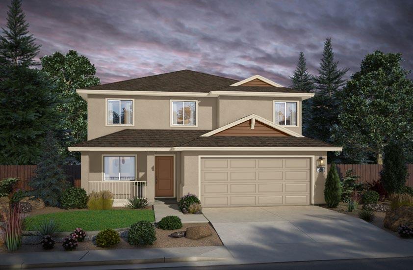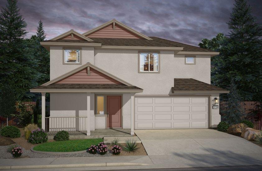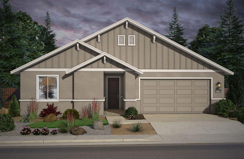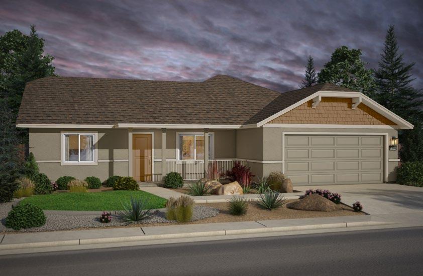 This spacious 1,923 sq ft singlestory home features three bedrooms, a den, two baths, and a two-car garage. The open living area combines the kitchen, dining, and living spaces, perfect for entertaining. The primary bedroom includes an en-suite bath, while the two additional bedrooms offer flexibility for guests, an office, or a playroom. The Ponderosa’s thoughtful design and modern finishes create a comfortable and inviting atmosphere.