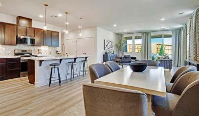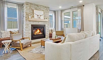 The Ridge presents seven diverse floor plans, ranging from single-story homes to multi-generational living options, all designed for modern comfort. With room conversion upgrades, customization to fit your lifestyle needs is at your fingertips. Our contemporary architecture harmoniously integrates with the natural surroundings, while the upscale interiors feature handset tile flooring, elegant birch cabinetry, gourmet kitchens with granite countertops, and energyefficient appliance packages. Enjoy cozy great rooms and outdoor patios, both offering gas fireplace options. Our award-winning design studio is here to help you personalize your home, ensuring every detail reflects your unique style.
