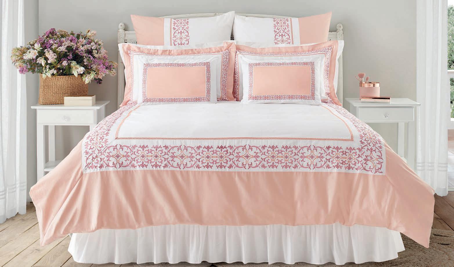 7 PIECE DUVET COVER ENSEMBLE, IN 300 THREAD COUNT COTTON SATEEN Duvet cover, 2 embroidered oxford-style standard pillowcases, 2 embroidered continental pillowcases, 2 oblong scatter cushions with embroidered detail