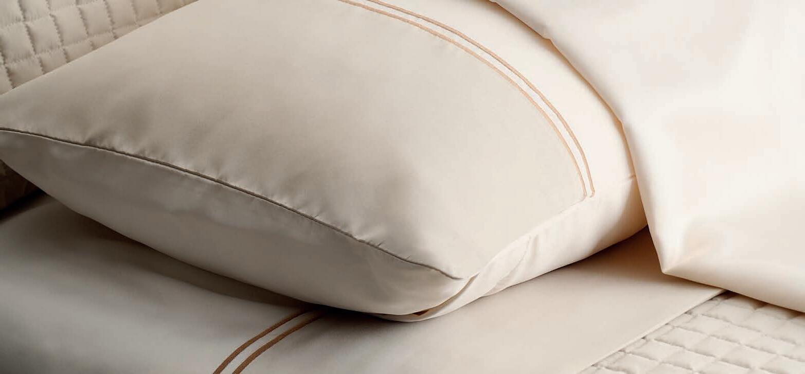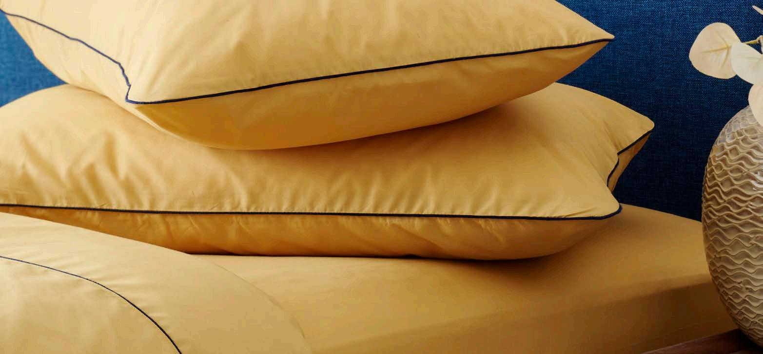 Contrast flanges create harmony with the Honey sheet set, and contrast cord piping creates an elegant framework.