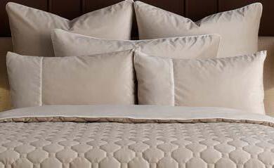 Kylie boasts an exquisite combination of colour and texture, pairing rich Velvet with all-over geometric quilting.