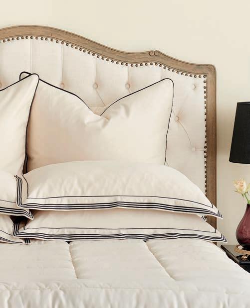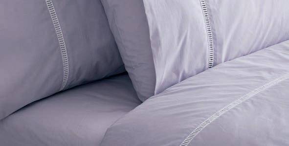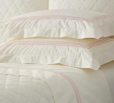 • Oxford-style standard pillowcases trimmed with satin stitch and edge braid detail