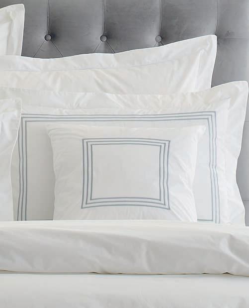 • Oxford-style standard pillowcases with double flange and contrast embroidered flossing detail