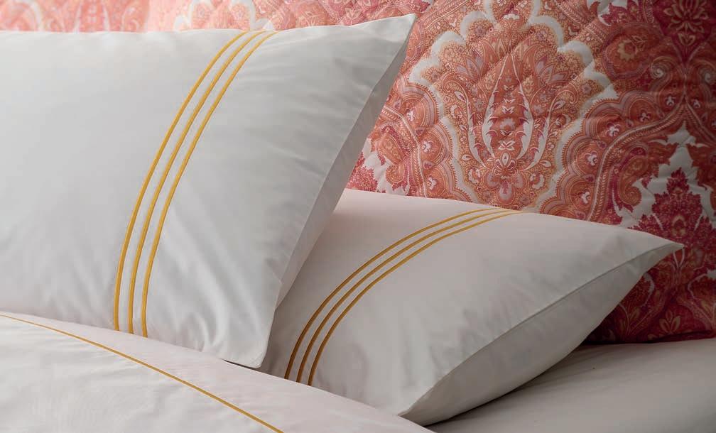 • Standard pillowcases with colourblock cuff and satin stitch detail