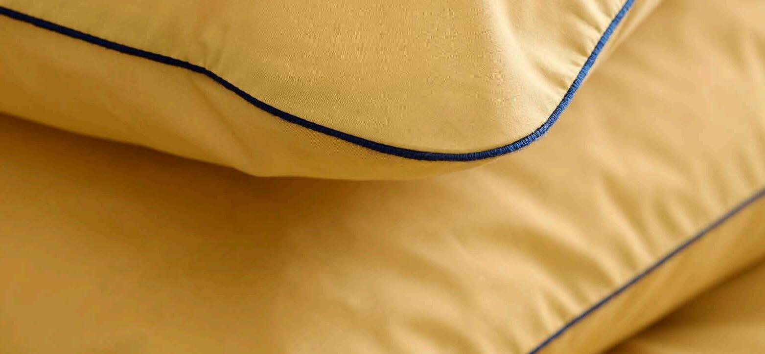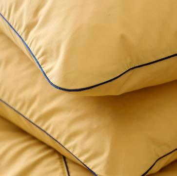 Contrast flanges create harmony with the honey sheet set, and contrast cord piping creates an elegant framework.