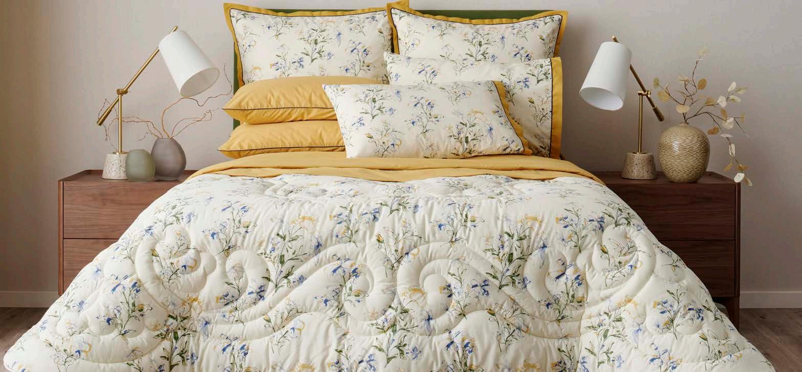 Bring warmth and cheer to your room with Nancy’s charming floral design, in shades of green, yellow and blue. Paired with a honey-coloured sheet set, Nancy is as lovely as a blossoming meadow on a sunny day!