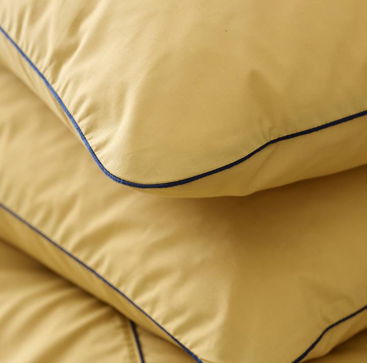 2 Standard pillowcases with contrast piping detail • Top sheet with contrast piping detail