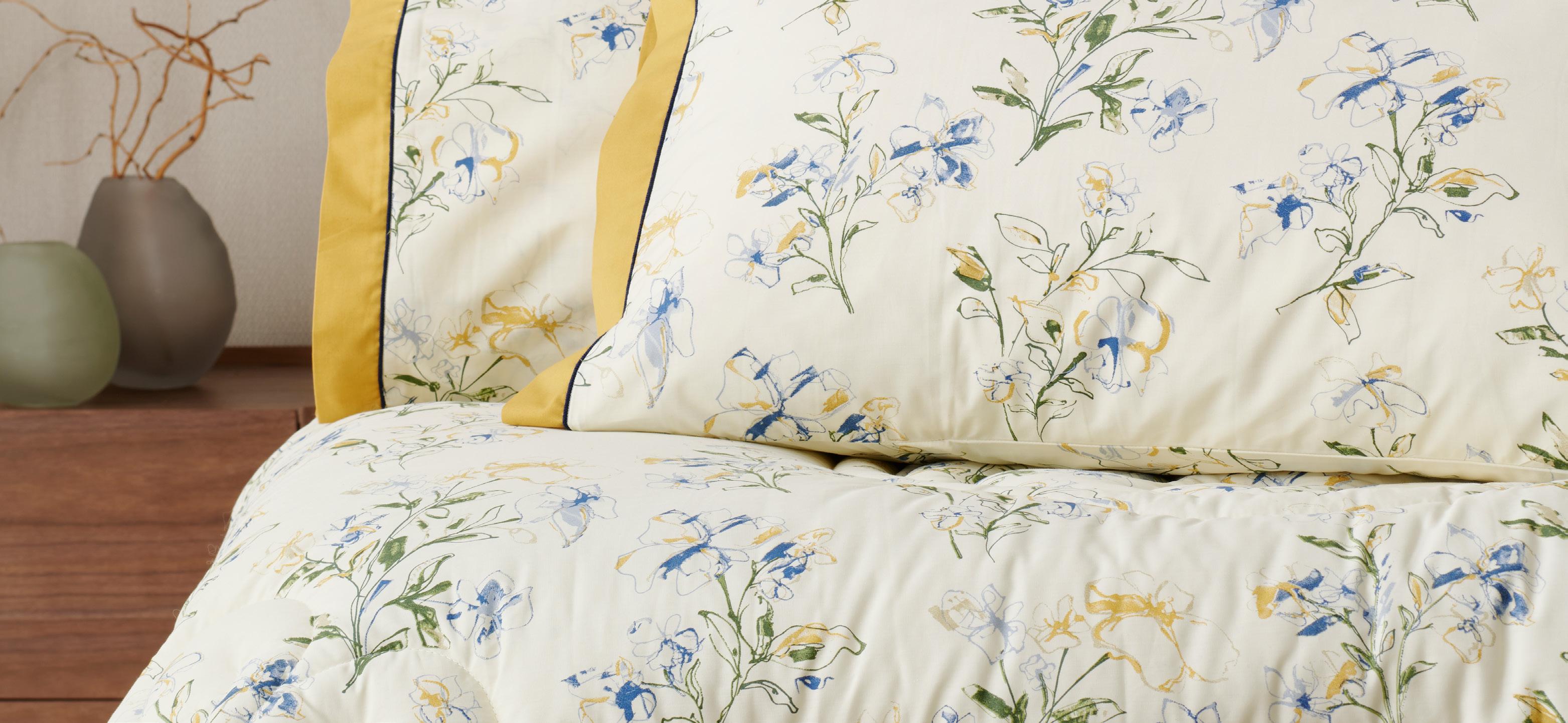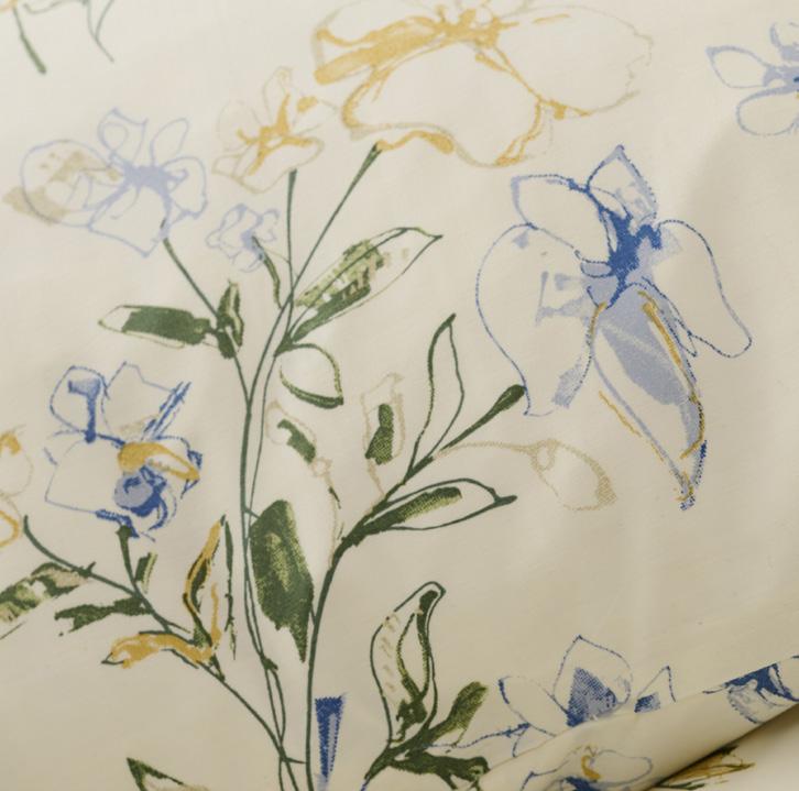 Bring warmth and cheer to your room with Nancy’s charming floral design, in shades of green, yellow and blue. Paired with a honey-coloured sheet set, Nancy is as lovely as a blossoming meadow on a sunny day!