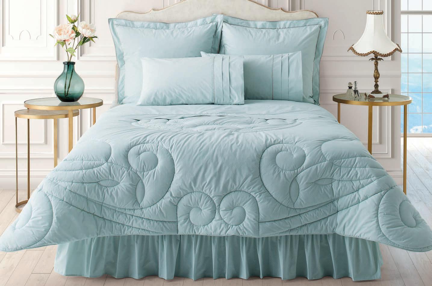 Helen a touch of sparkle BUY ON CREDIT FOR ONLY *Monthly instalments include VAT, delivery and service fees. DOUBLE QUEEN KING 24 Months R 297.00 R 305.00 R 326.00 18 Months R 362.00 R 372.00 R 399.00 6 Months R 888.00 R 914.00 R 986.00 6 PIECE COMFORTER ENSEMBLE, IN PRINTED PRES LES COTTON PERCALE BLEND Quilted comforter with cord piping Standard pillowcases with pleats and shimmer braid detail Oxford-style continental/emperor pillowcases with shimmer braid detail Nightfrill 7 years You are saving over R 900 in your investment of this product! Continental Code: HELCECP6 • Emperor Code: HELCEMP6 Colour: DUCK EGG Price Ex VAT Double - R 3 740.00 Queen - R 3 900.00 King - R 4 220.00 Price Inc VAT Double - R 4 301.00 Queen - R 4 485.00 King - R 4 853.00