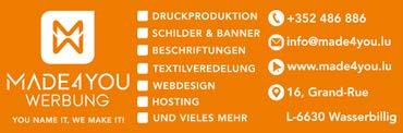Maacht och Dir mat a schéckt eis Är Fotoen, Maniffen oder privat Annoncë fir an di nächst Ausgab eran!