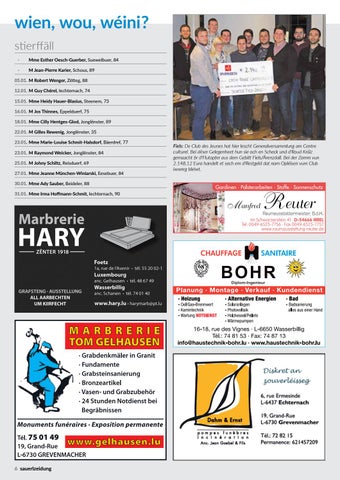 05.01. M Robert Wenger, Zëtteg, 88 12.01. M Guy Chérel, Iechternach, 74 15.01. Mme Heidy Hauer-Blasius, Steenem, 73 16.01. M Jos Thinnes, Eppelduerf, 75 18.01. Mme Cilly Hentges-Glod, Jonglënster, 89 22.01. M Gilles Rewenig, Jonglënster, 35 23.01. Mme Marie-Louise Schmit-Halsdorf, Bäerdref, 77 23.01. M Raymond Weicker, Jonglënster, 84 25.01. M Johny Schiltz, Reisduerf, 69 27.01. Mme Jeanne München-Winiarski, Eesebuer, 84 30.01. Mme Ady Sauber, Beideler, 88 31.01. Mme Irma Hoffmann-Schmit, Iechternach, 90