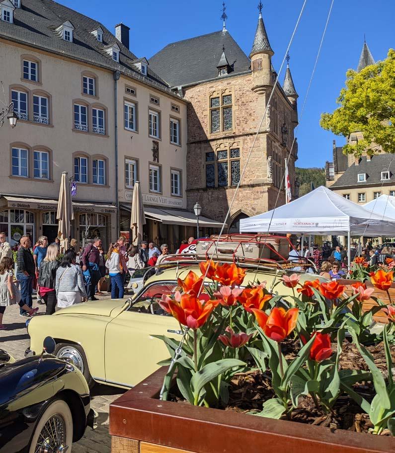 Ein besonderer Programmpunkt ist zudem der CarSonndig am Ostersonntag: An diesem Tag verwandelt sich die historische Altstadt in eine Bühne für klassische Fahrzeuge. Zahlreiche Oldtimer finden ihren Weg nach Echternach und begeistern Besucher aus der gesamten Region. Zwischen den historischen Fassaden entsteht so eine ganz besondere Atmosphäre, die Technikgeschichte und Stadtbild auf eindrucksvolle Weise miteinander verbindet.