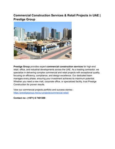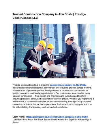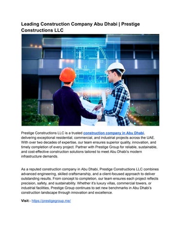 Prestige Group is a leading construction and contracting company in the UAE, known for delivering high-quality residential, commercial, industrial, and institutional projects. With decades of experience, the company is committed to innovation, sustainability, and timely project delivery, making it a trusted name in the construction industry.