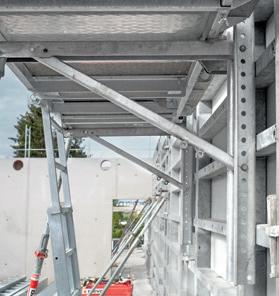Æ Basiert auf Leistungsanforderungen DIN EN 12811 / 12812 Æ Mehrstöckiger Einsatz Æ Bühnen ohne Hindernisse: Richtstützen ausserhalb des Geländers Æ Belastbar bis 150 kg/m² (Lastklasse 3) Alles in einem System Komplettes Sicherheitssystem für Ihre Wandschalung Mammut XT